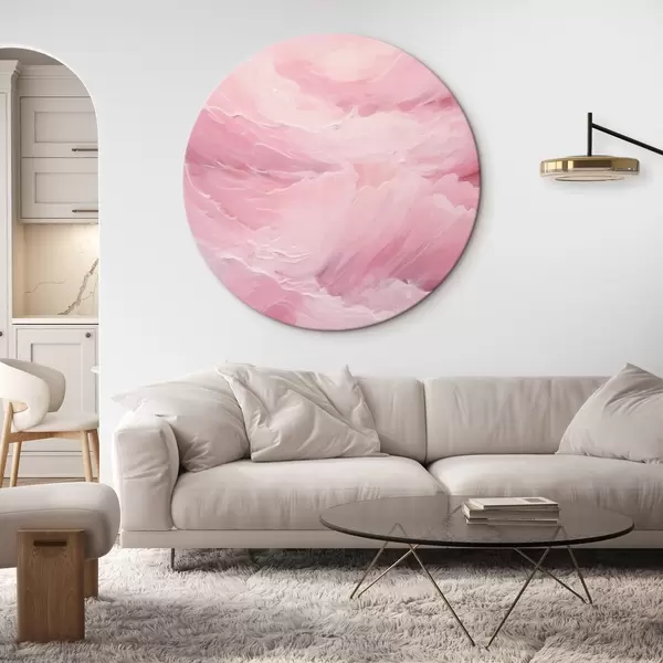 Apaļas gleznas Abstrakta rozā ainava ar gludām viļņveida formām r42929