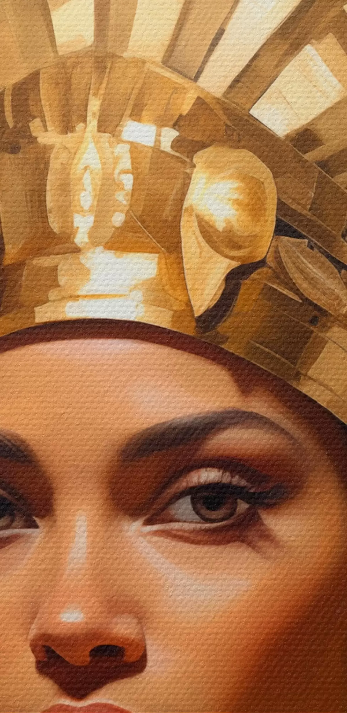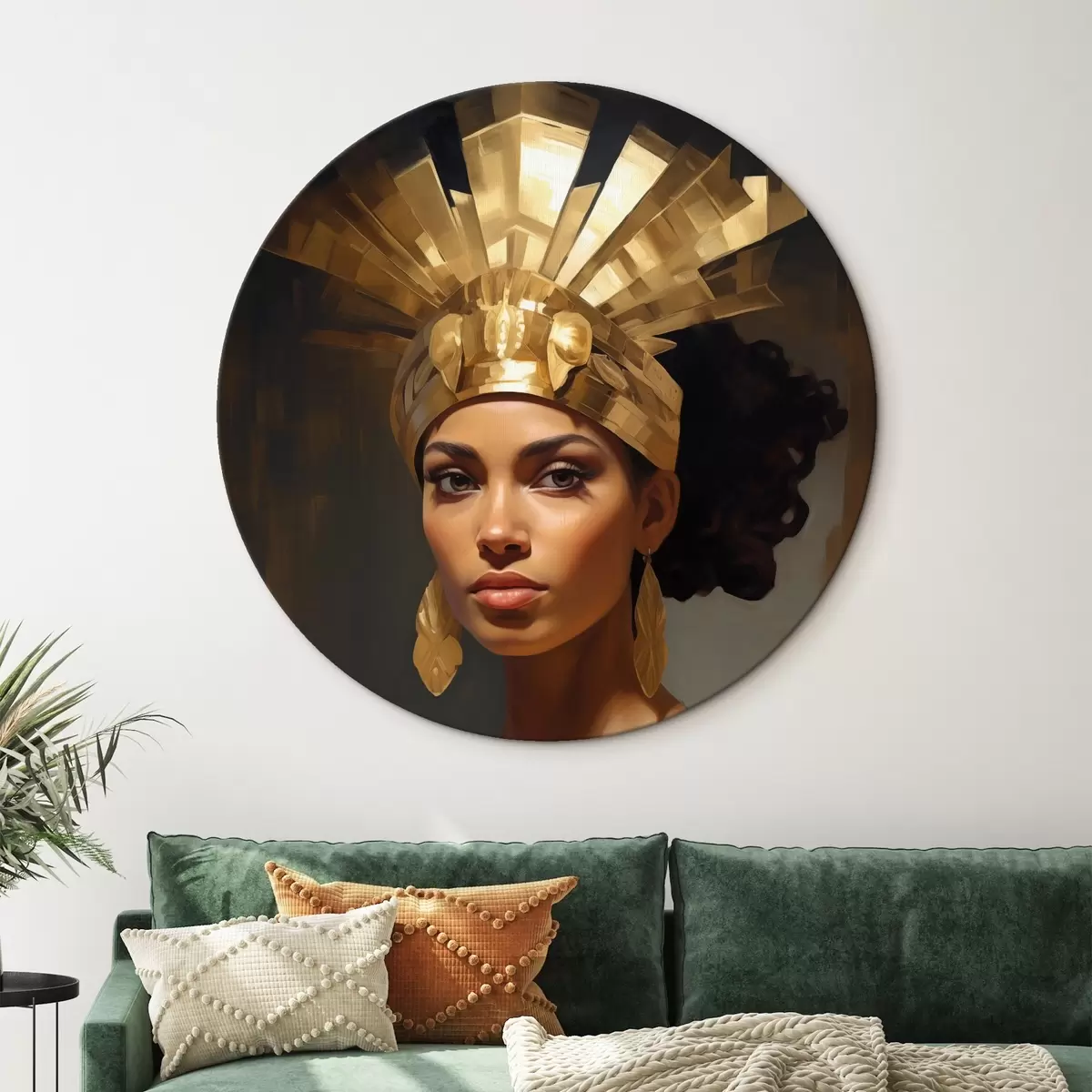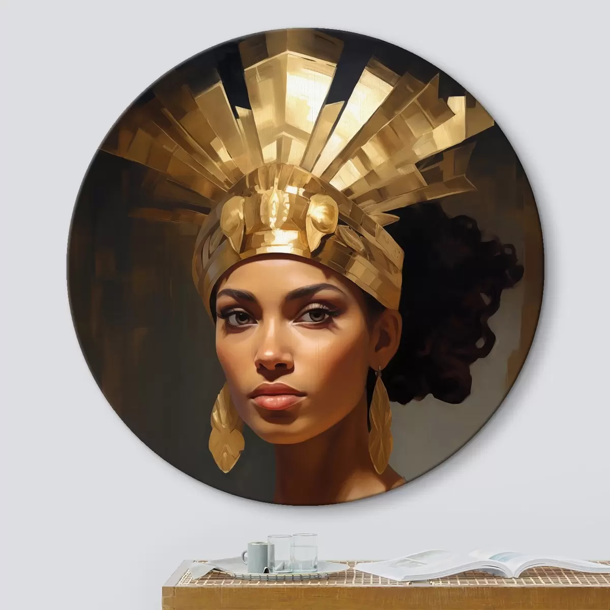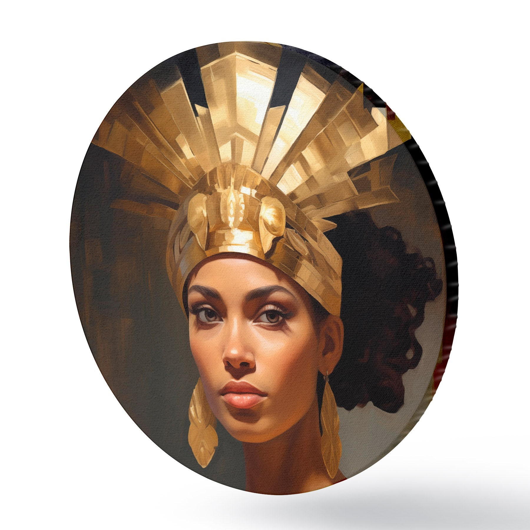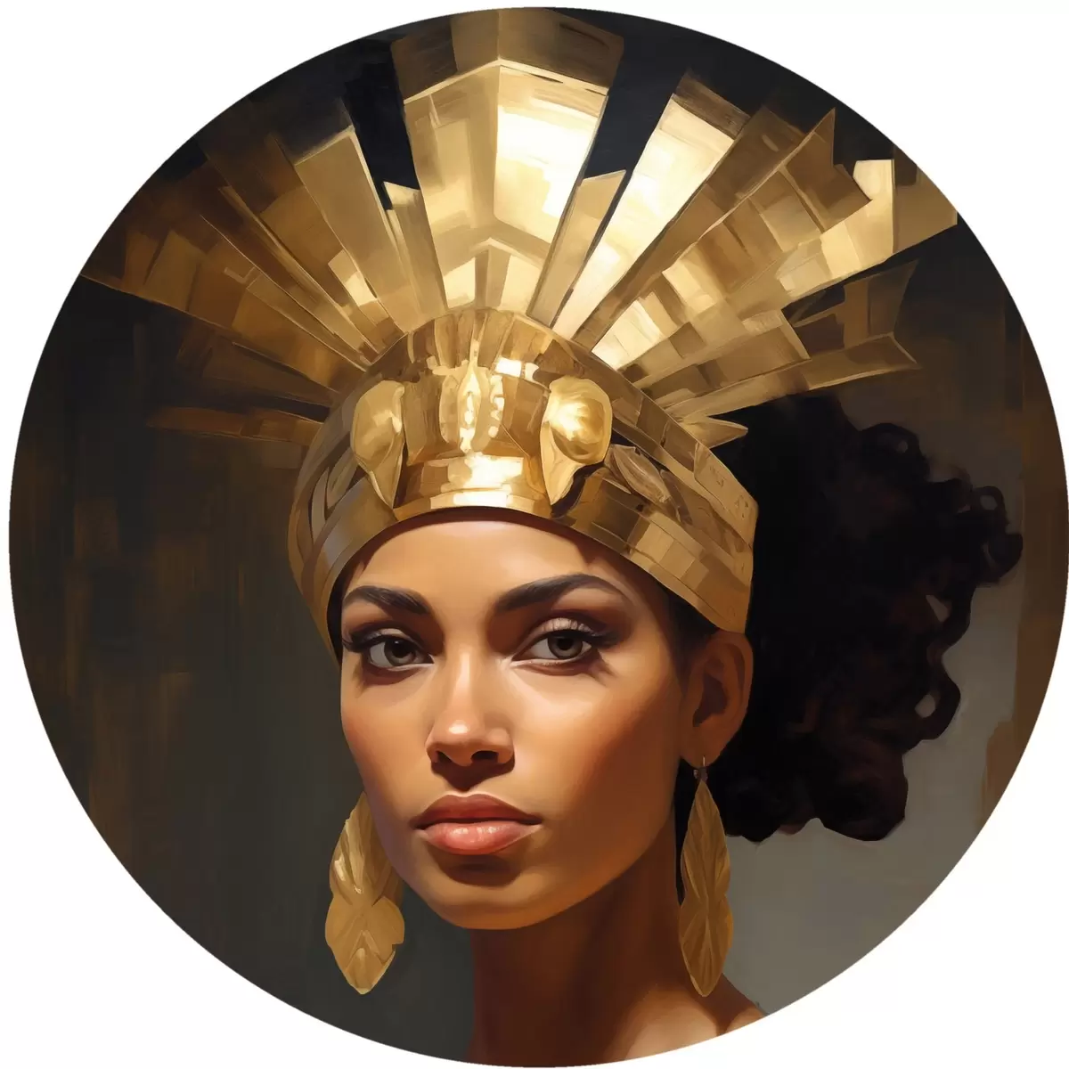 Apaļas gleznas Sievietes portrets ar majestātisku galvassegu un tradicionāliem rotājumiem r42931