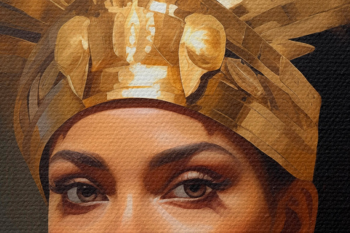 Attēls Sievietes portrets ar majestātisku galvassegu un tradicionāliem rotājumiem Nr r42931