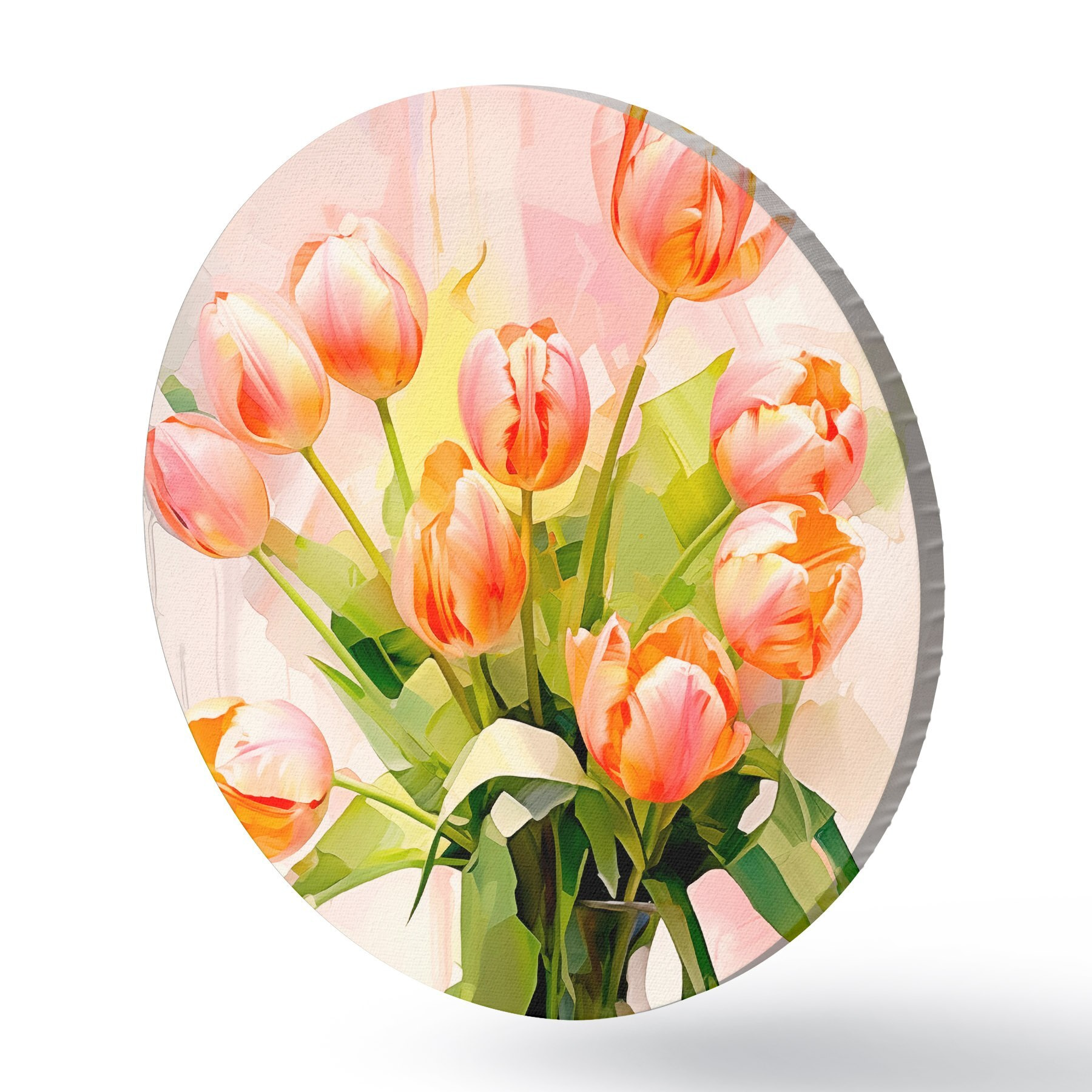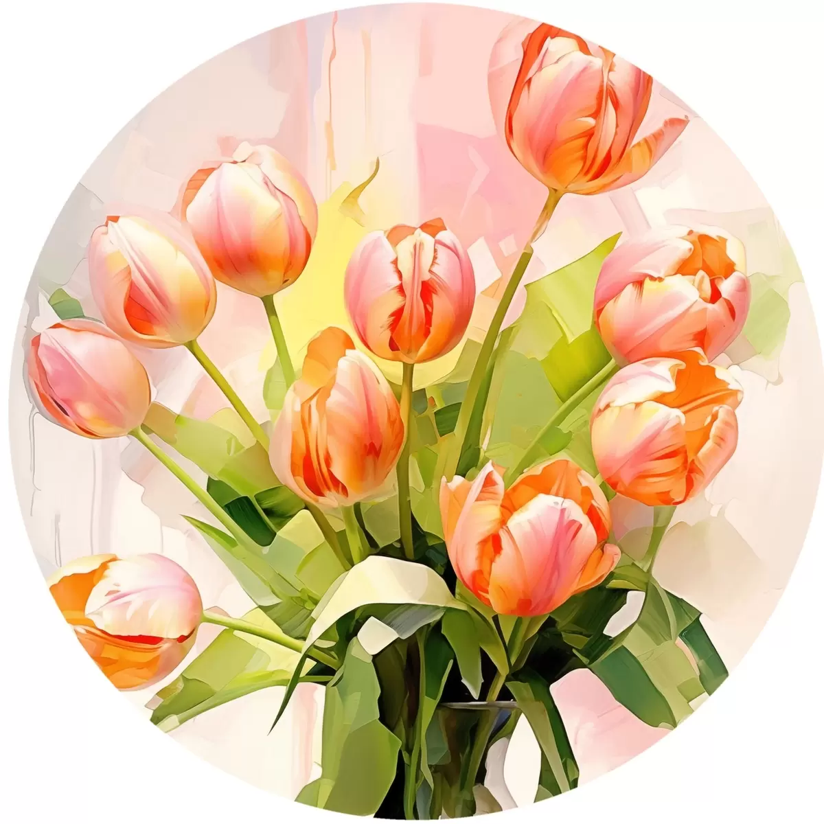 Apaļas gleznas Gleznieciska klusā daba ar tulpēm stikla vāzē uz gaiša fona r42940
