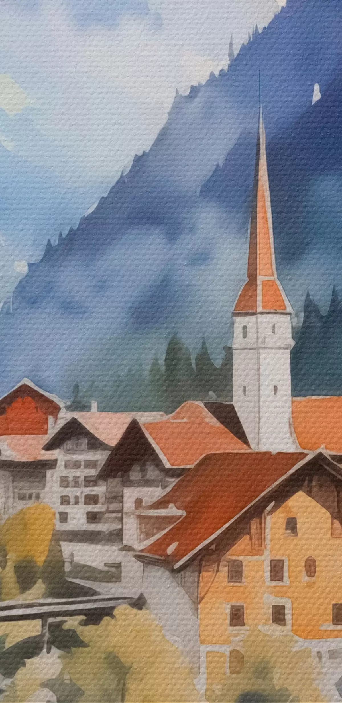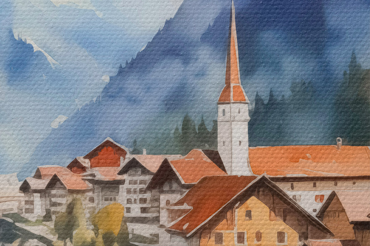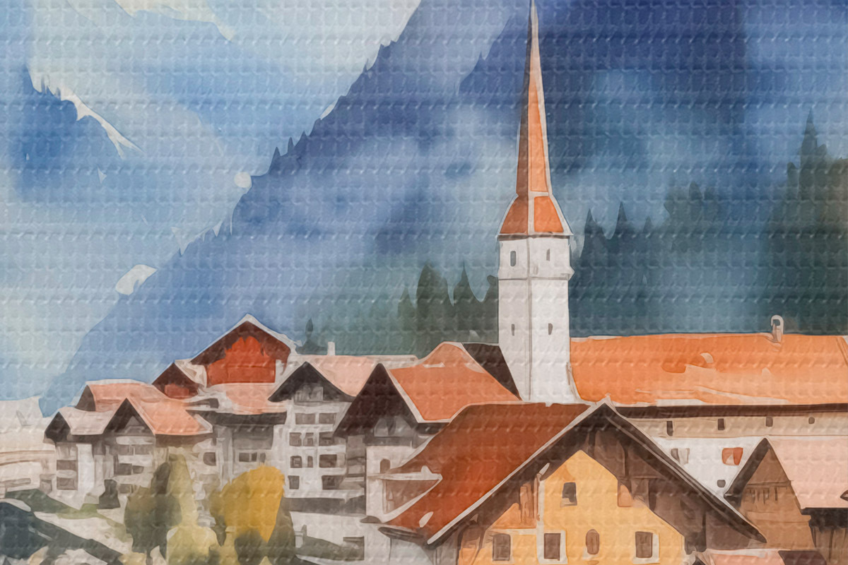 Attēls Ciemats pie kalniem imitācija akvarelis Nr r42964