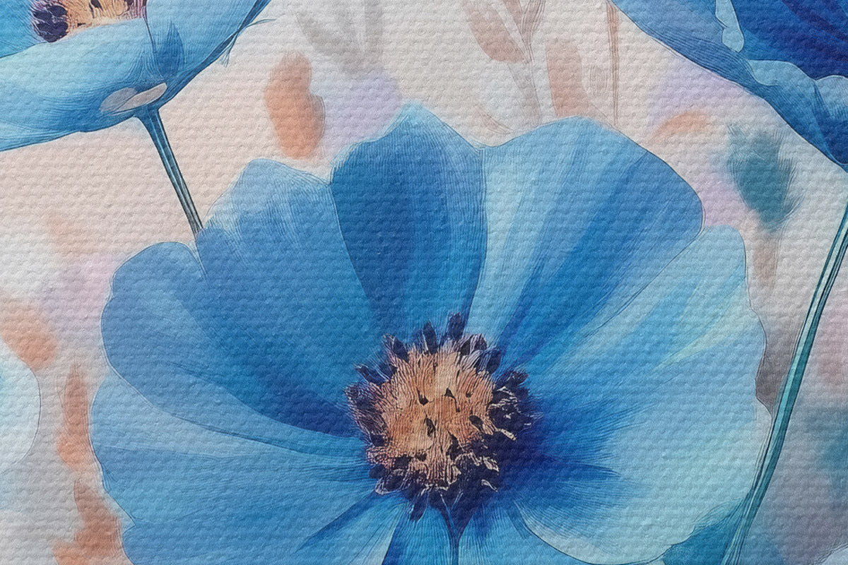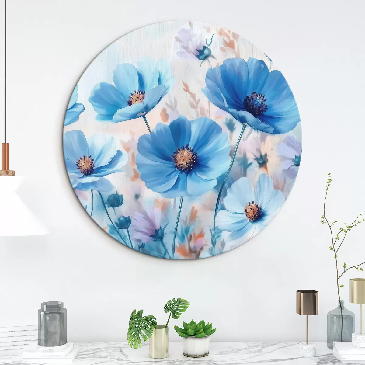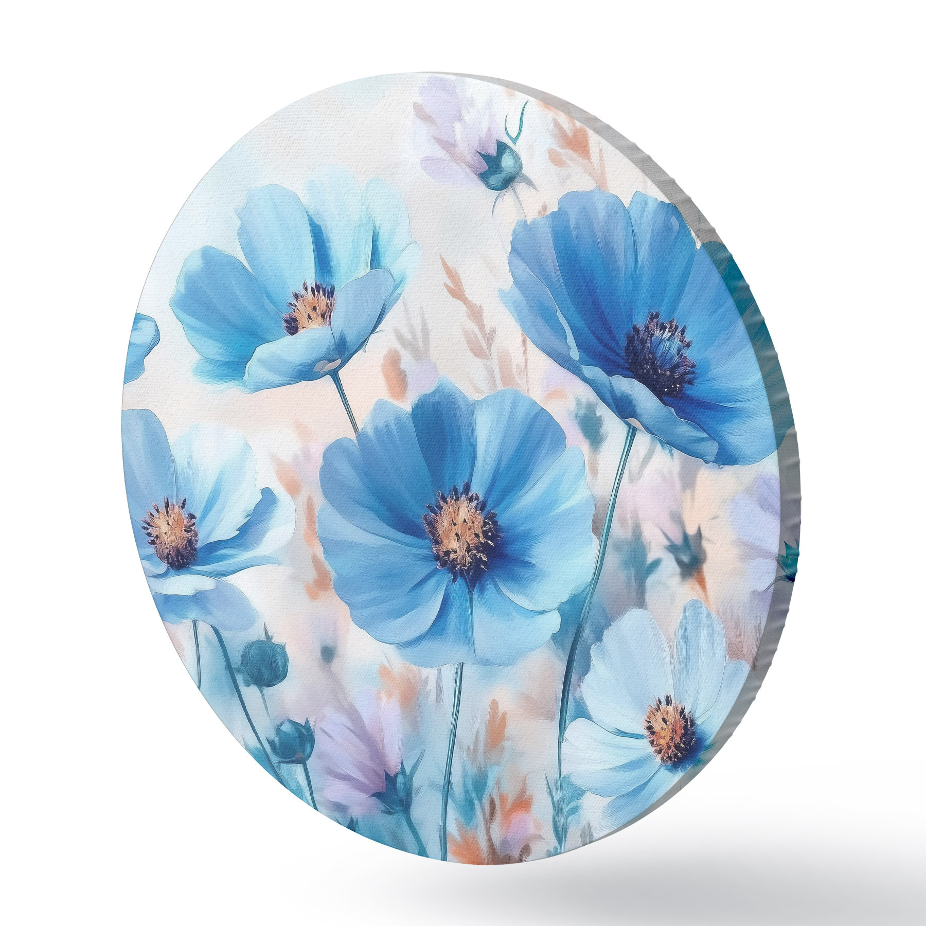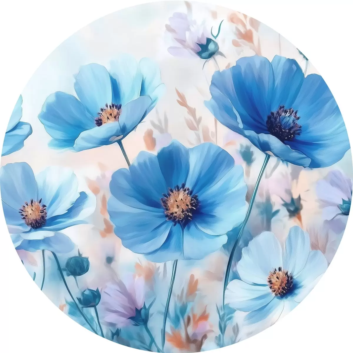 Apaļas gleznas Zili ziedi uz zila fona r42971