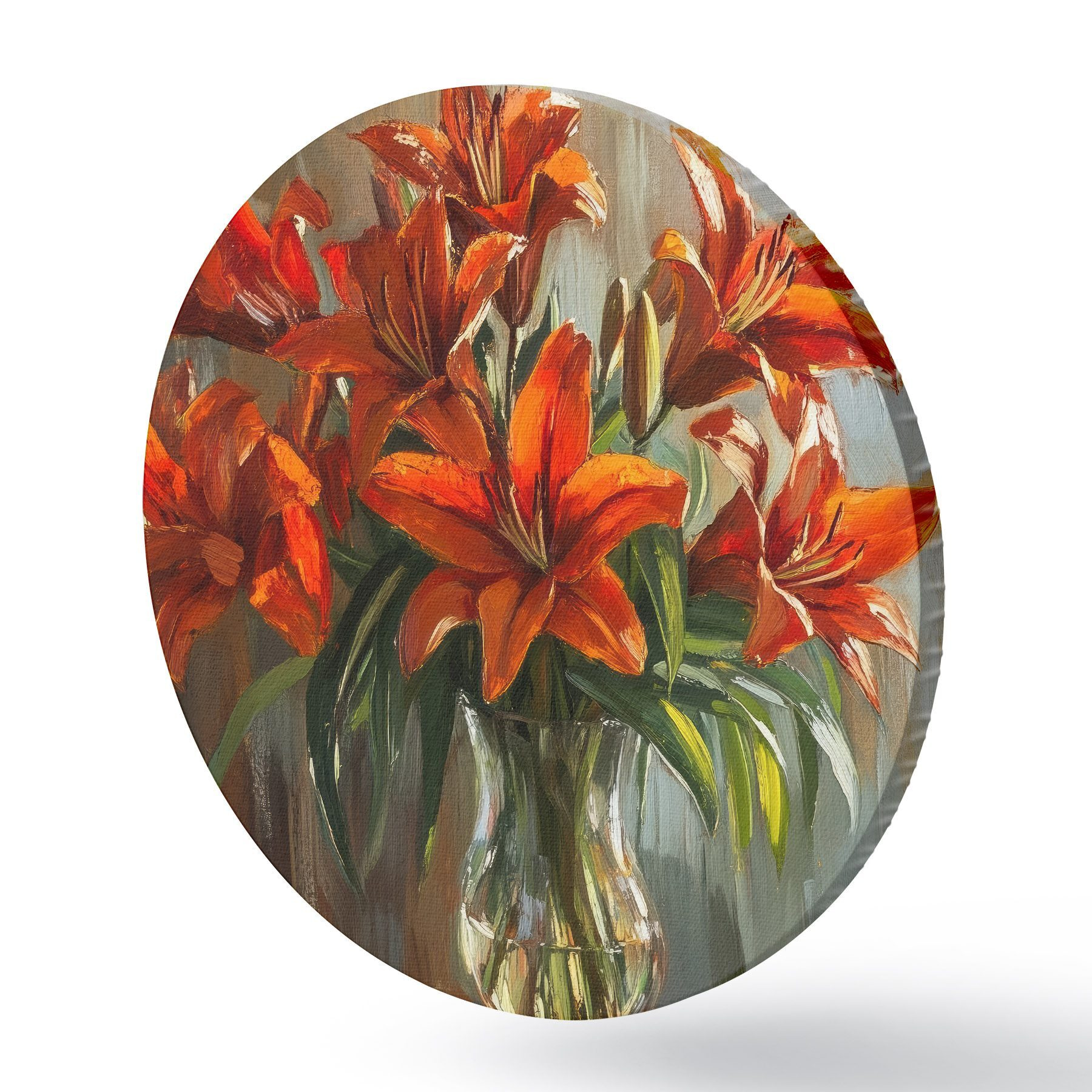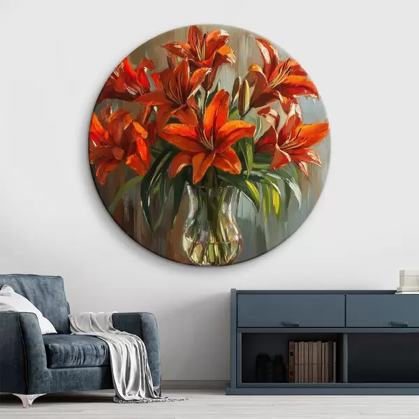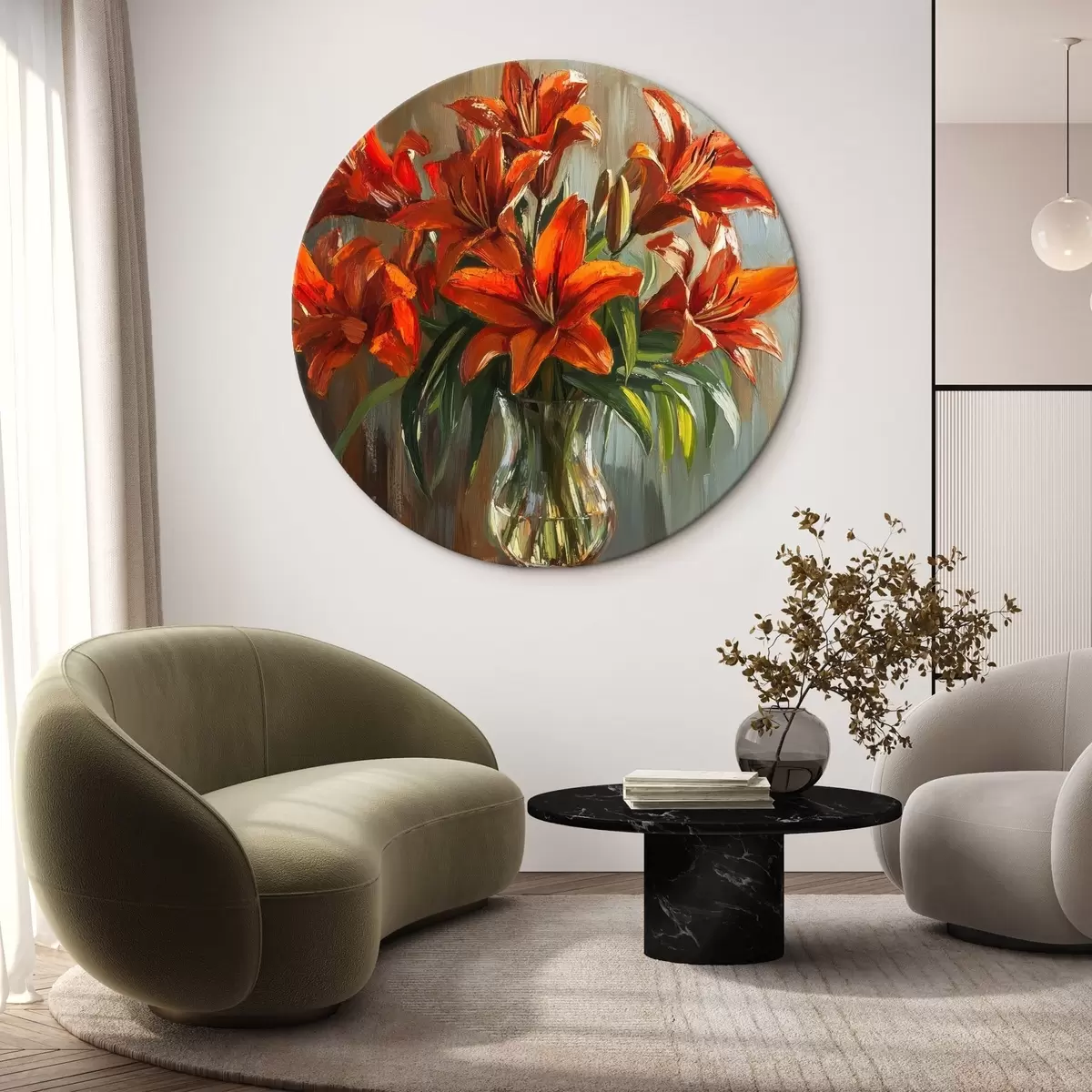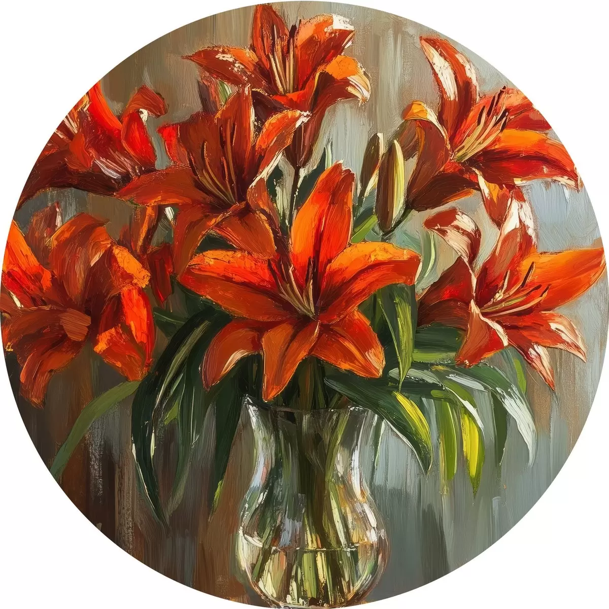 Apaļas gleznas Sarkanās lilijas eļļas krāsas stilā r42977