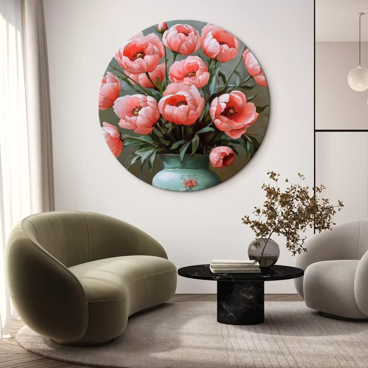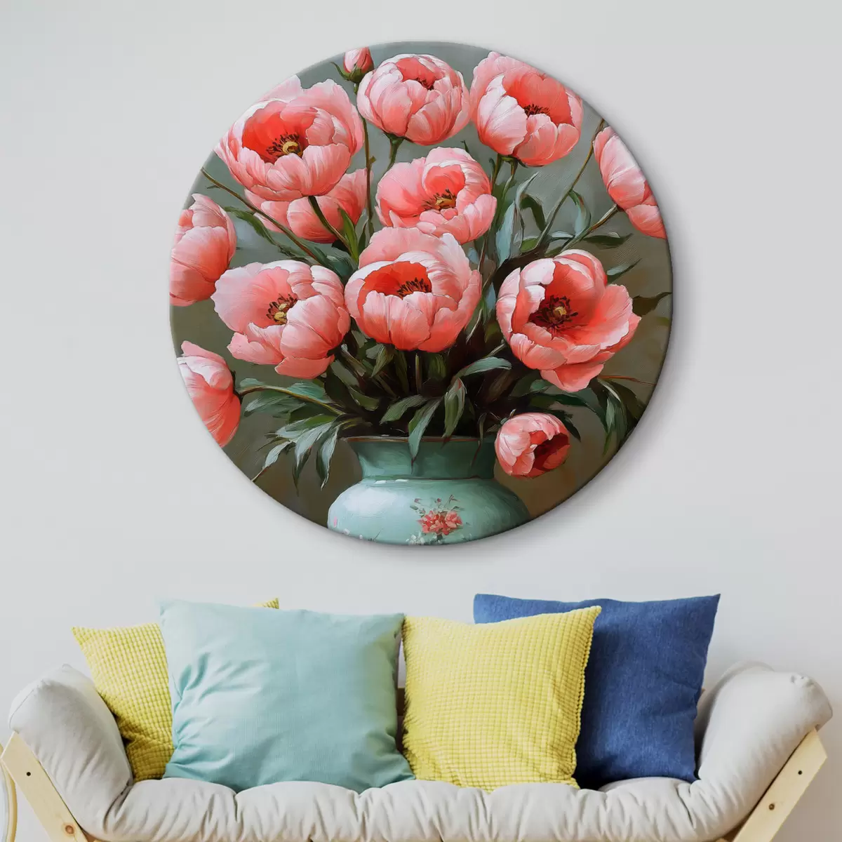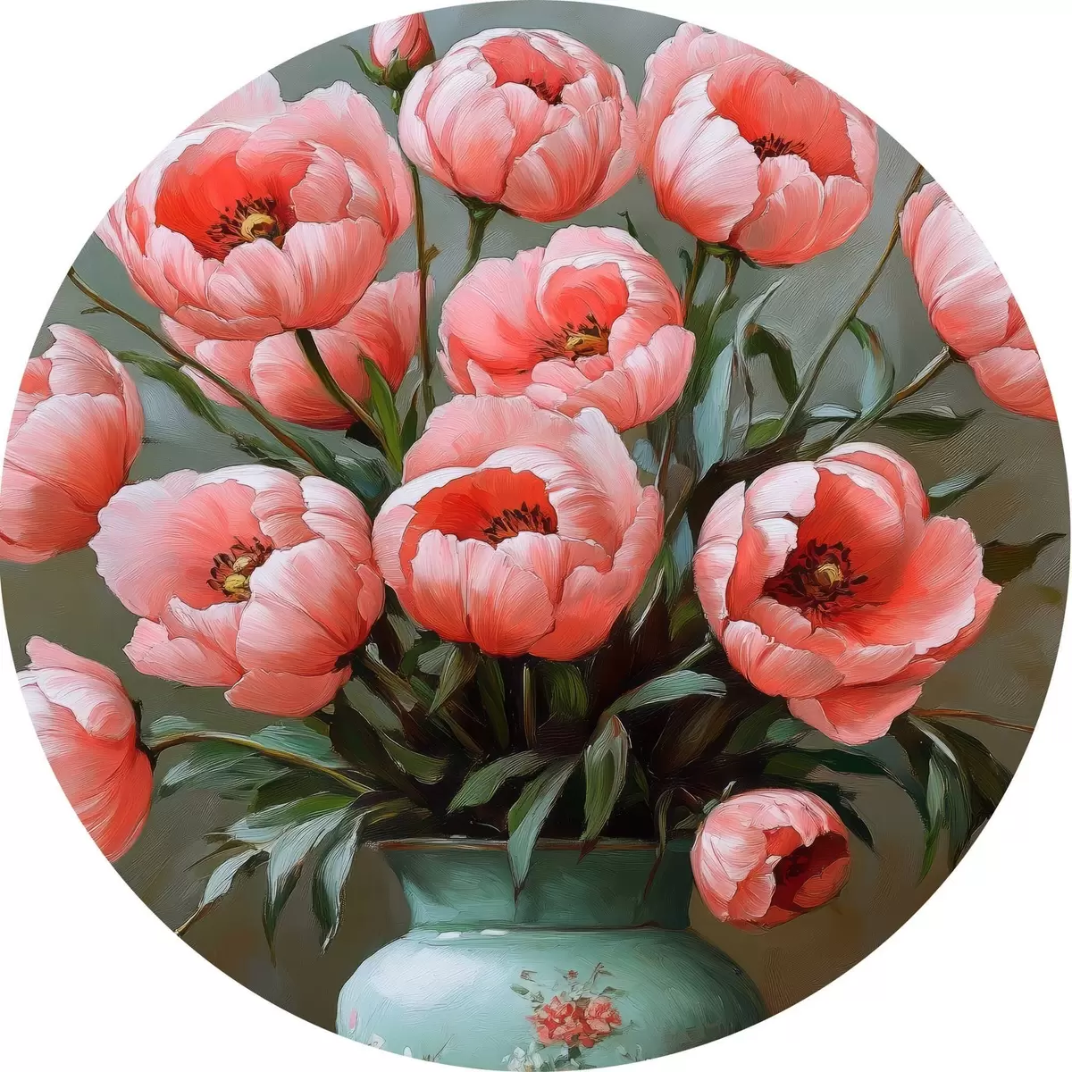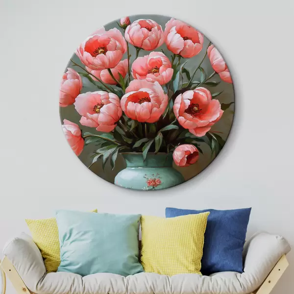 Apaļas gleznas Sulīgi rozā ziedi vāzē r42979