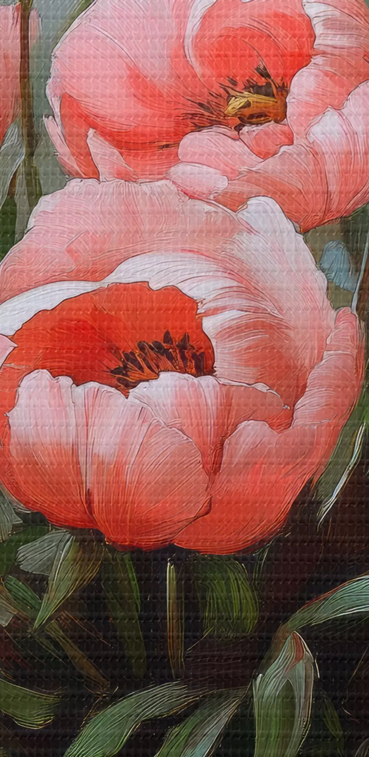 Smalkais diegu pinums uz šī audekla atgādina profesionālu mākslinieku audeklu virsmu.
