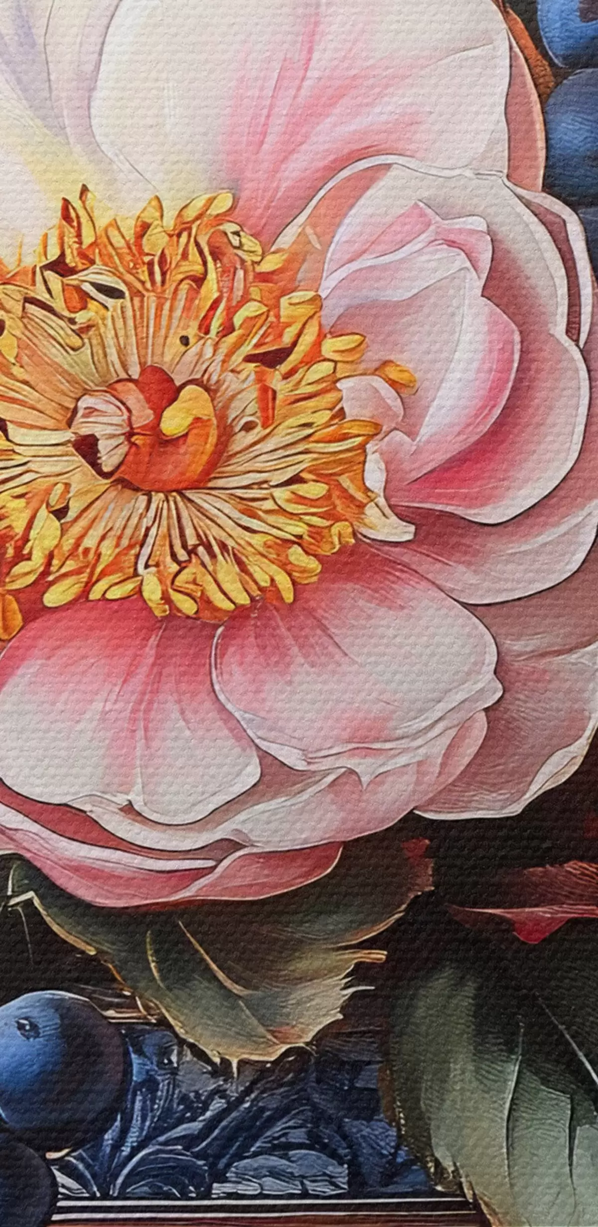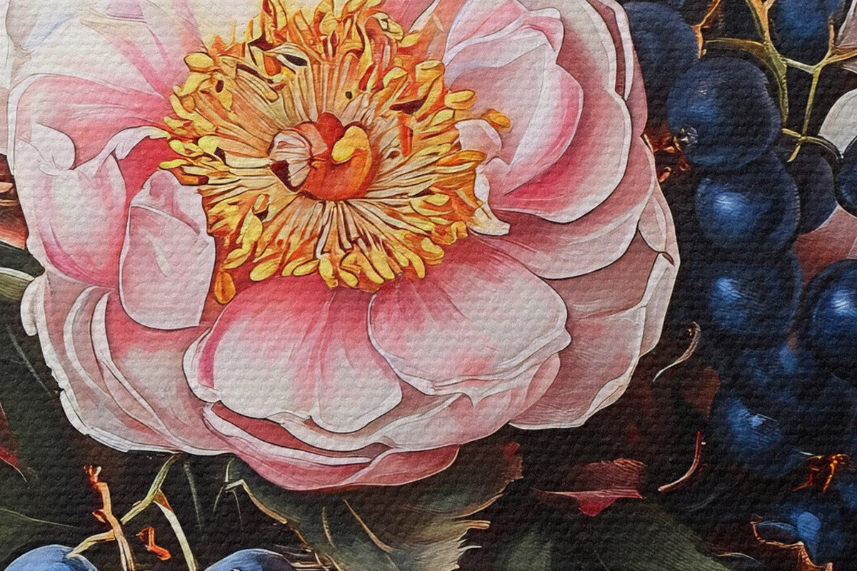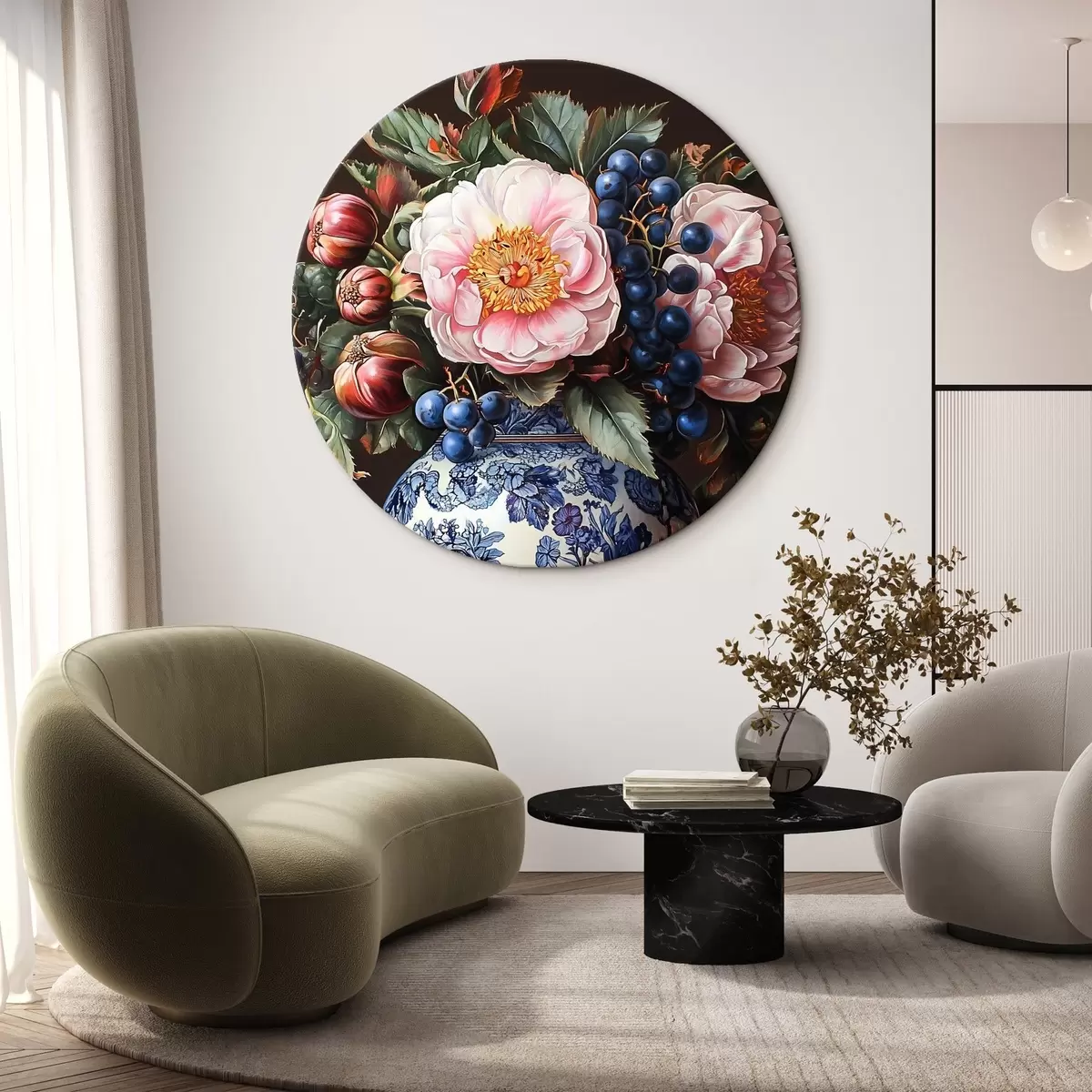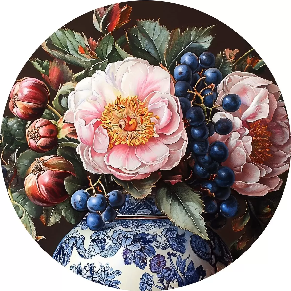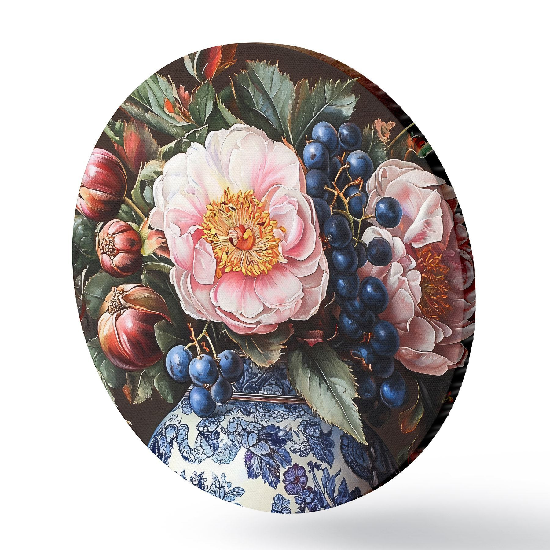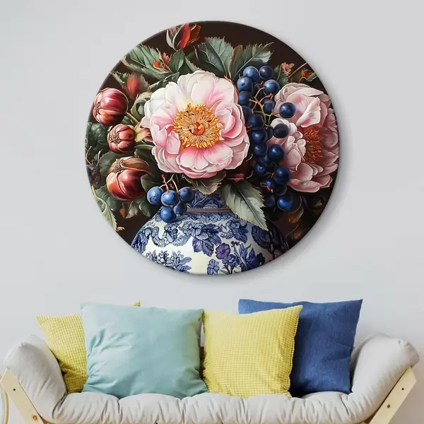 Apaļas gleznas Puķu un augļu pušķis r42980