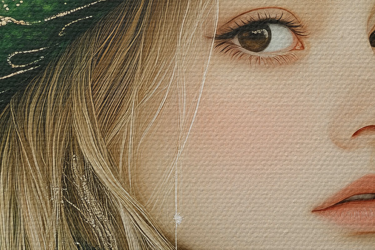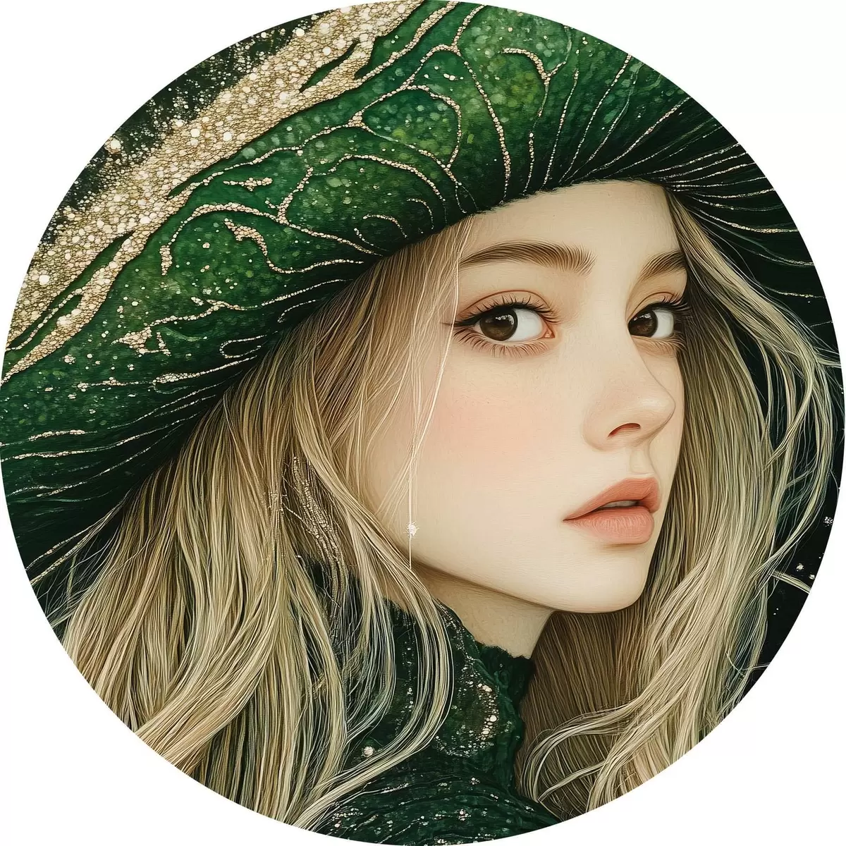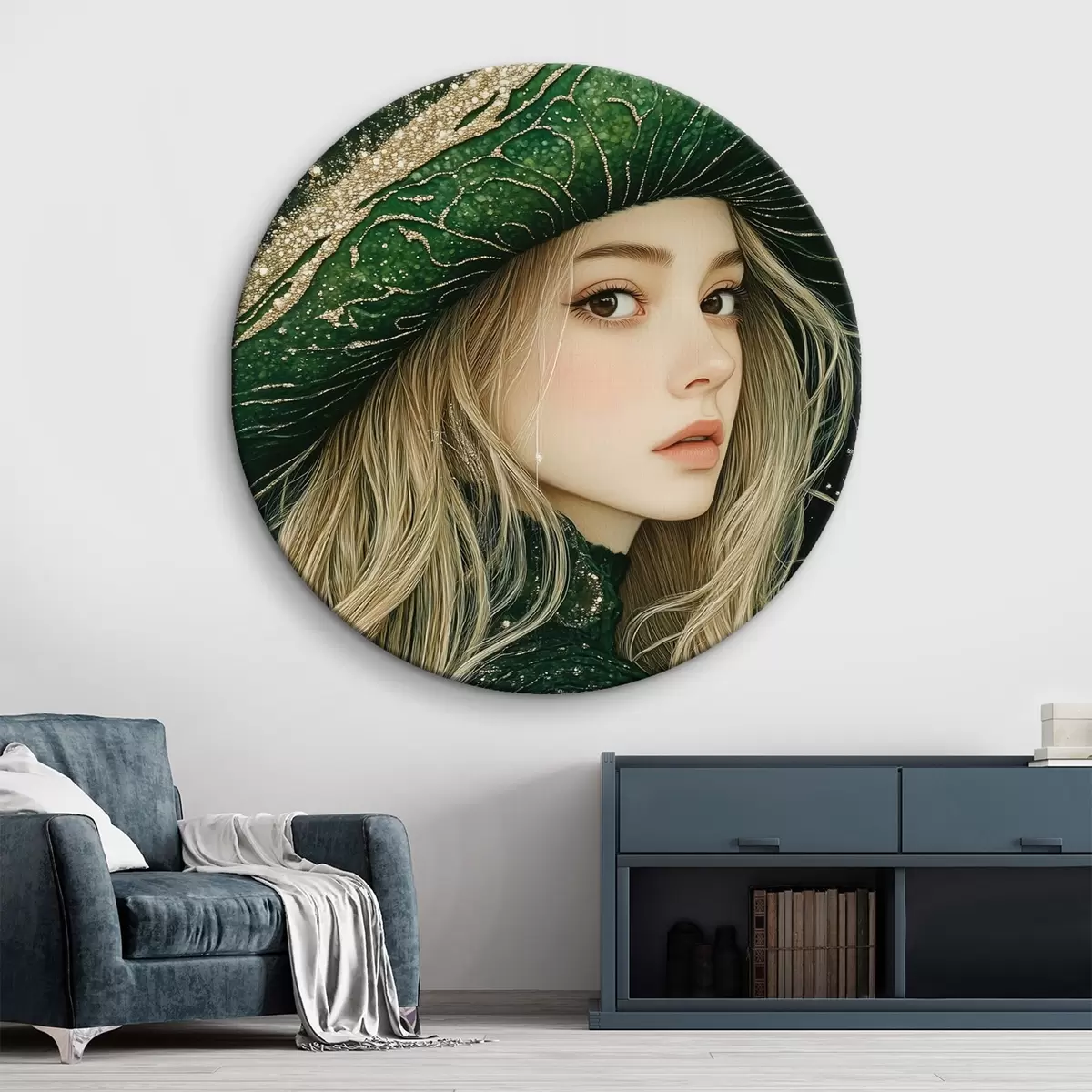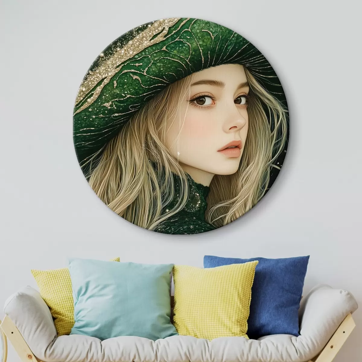 Apaļas gleznas Meitenes portrets zaļā cepurē r42982