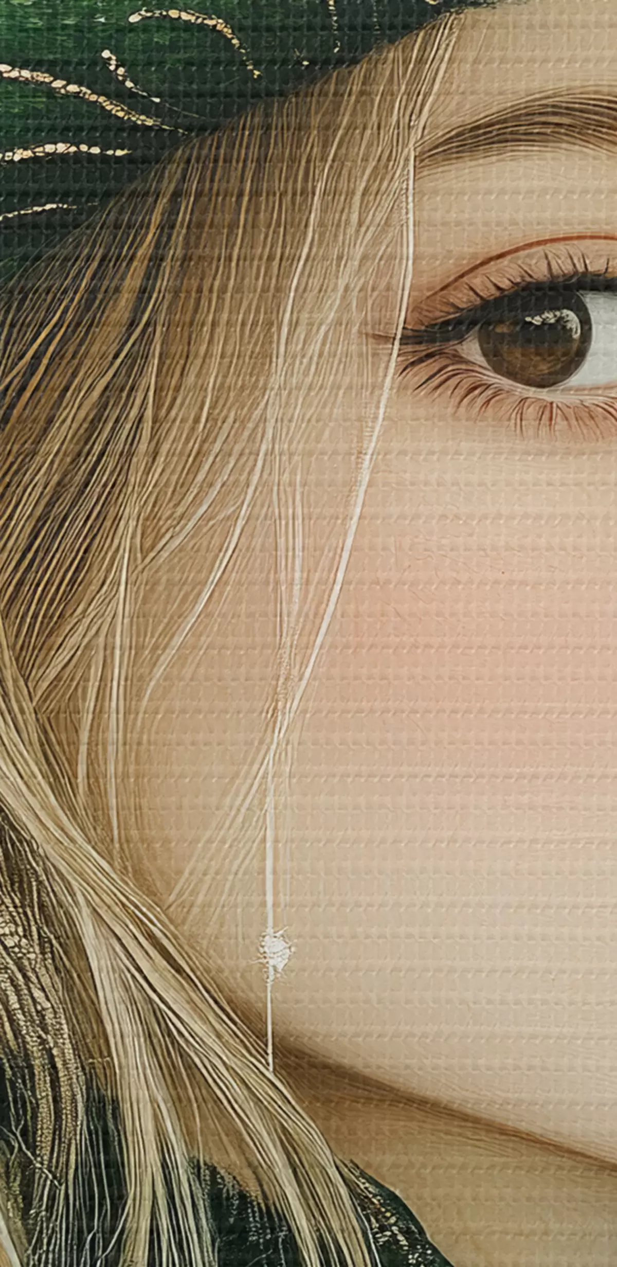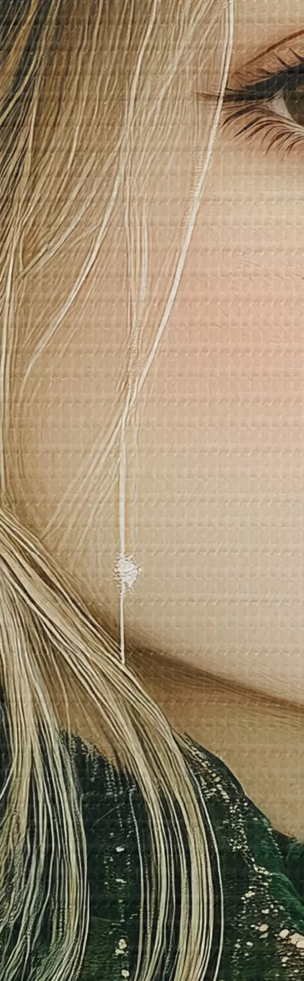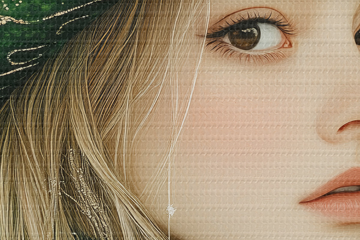 Smalkais diegu pinums uz šī audekla atgādina profesionālu mākslinieku audeklu virsmu.