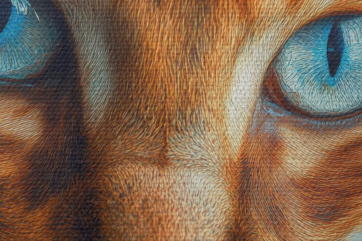 Smalkais diegu pinums uz šī audekla atgādina profesionālu mākslinieku audeklu virsmu.