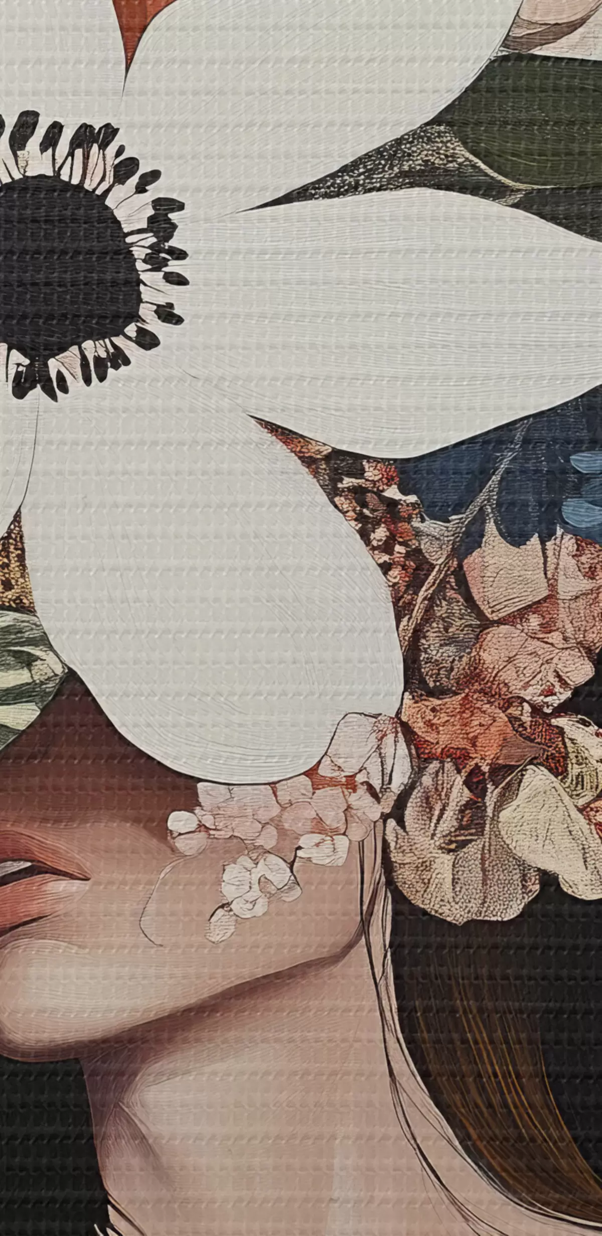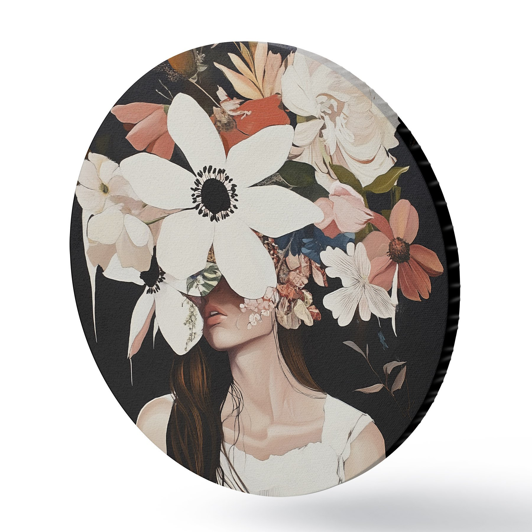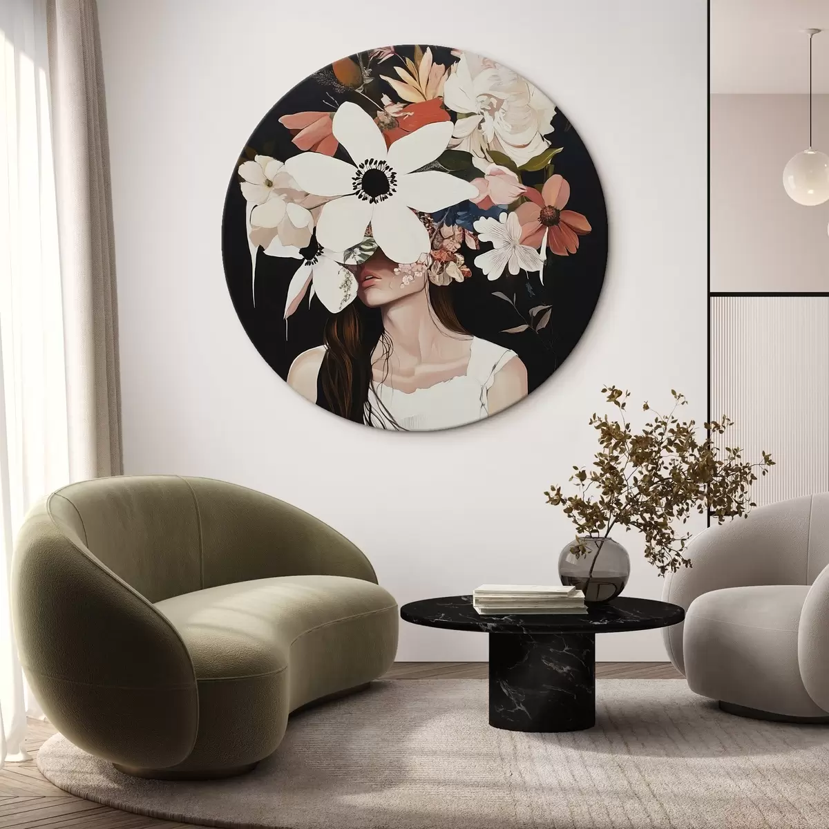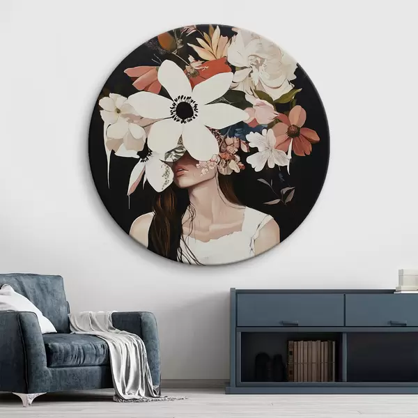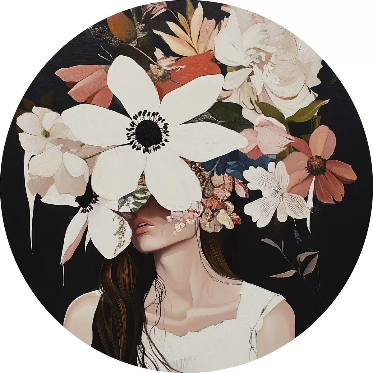 Apaļas gleznas Meitene ar ziediem uz sejas r42989