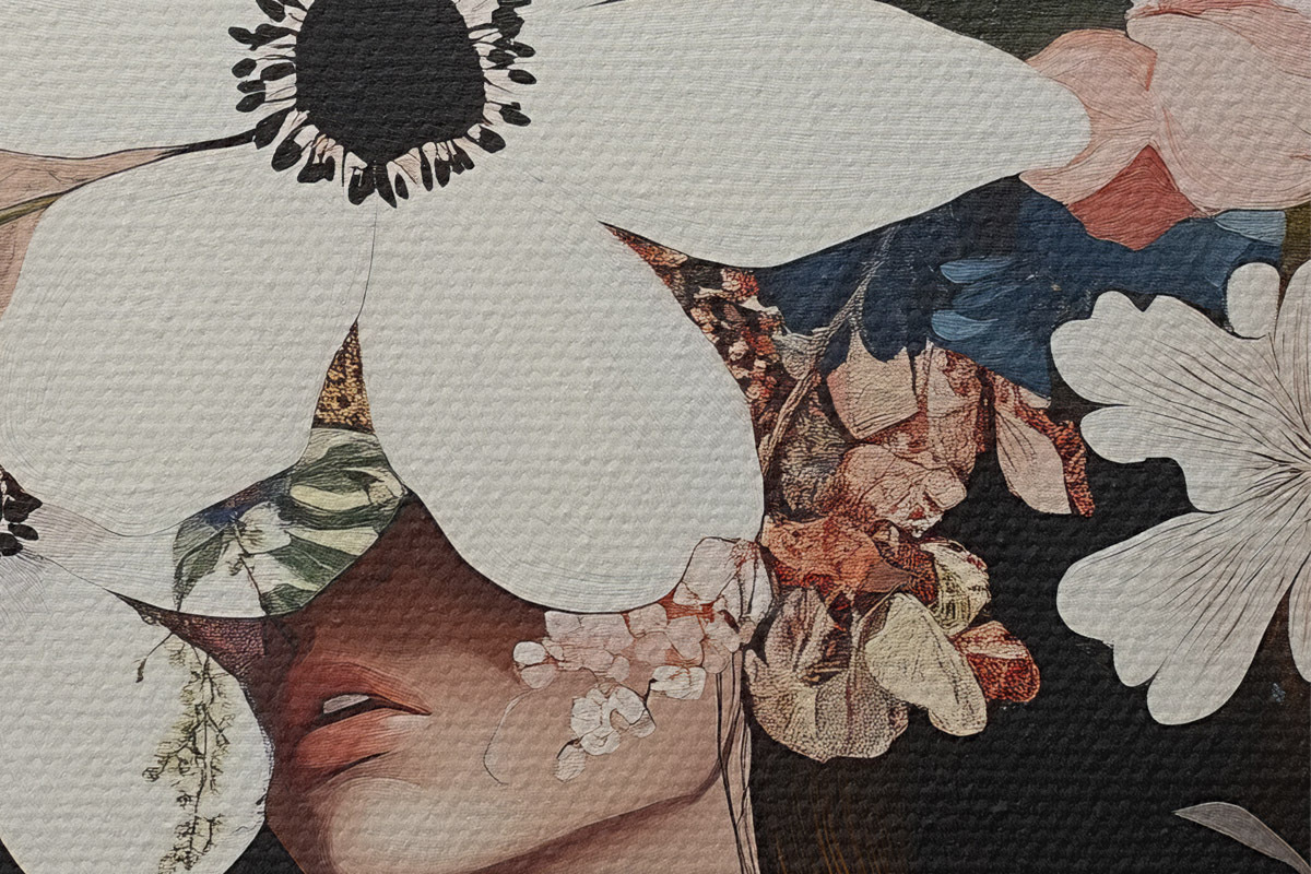 Attēls Meitene ar ziediem uz sejas Nr r42989