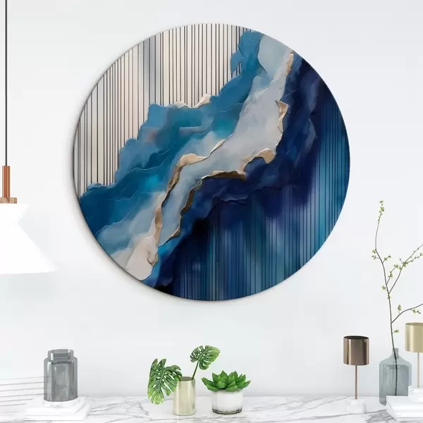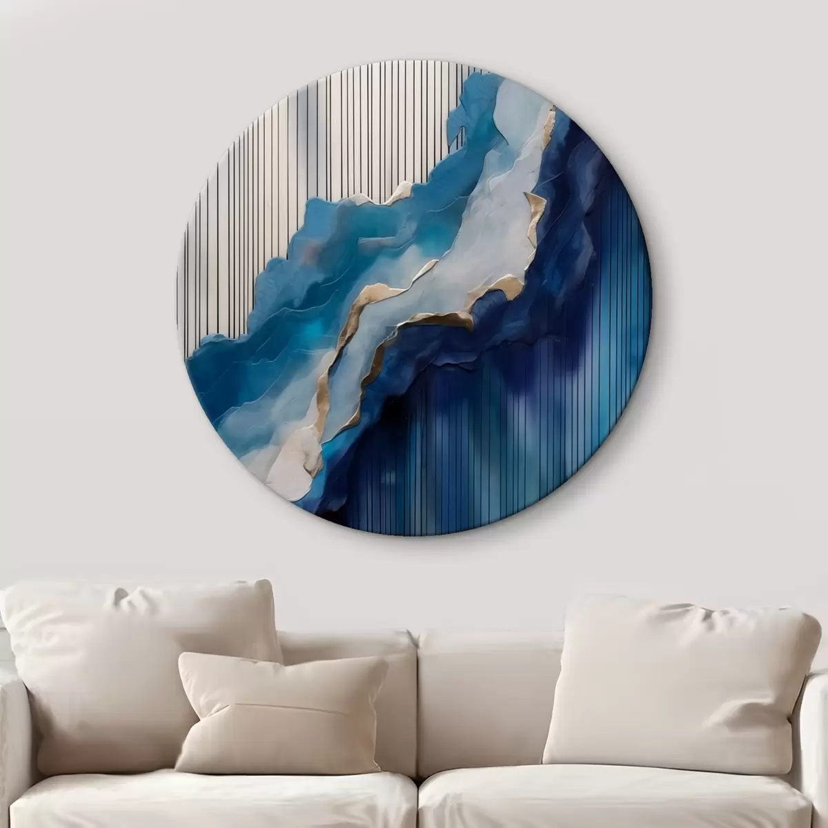 Apaļas gleznas Abstraktas zilas tekstūras ar līnijām fonā r43002