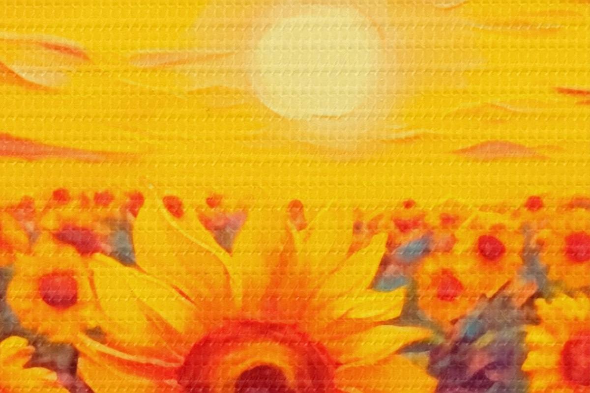 Smalkais diegu pinums uz šī audekla atgādina profesionālu mākslinieku audeklu virsmu.