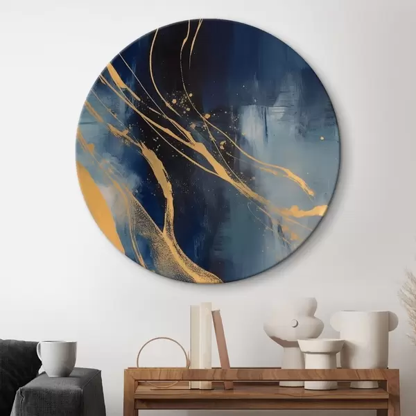 Apaļas gleznas Abstrakcija zilos un dzeltenos toņos r43014