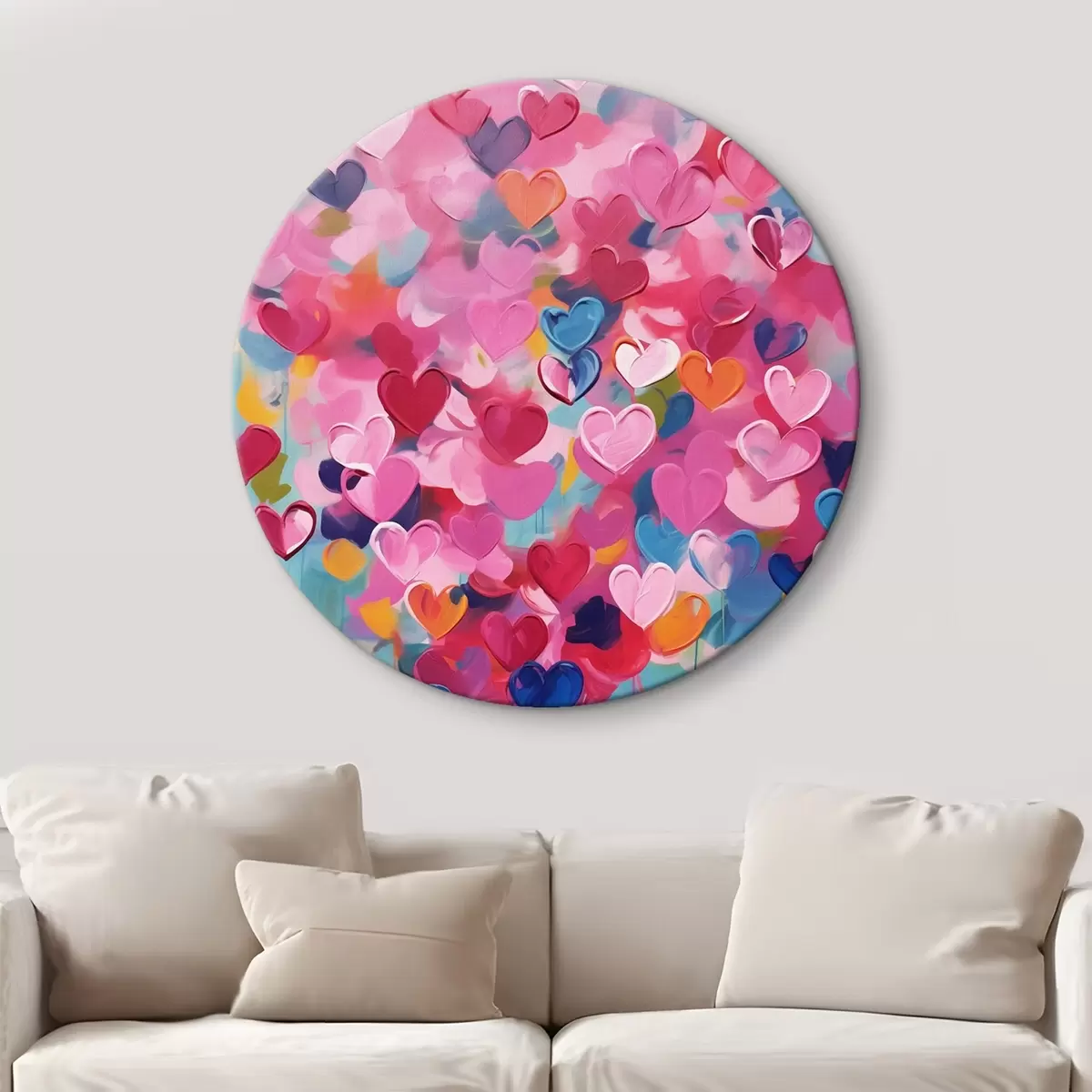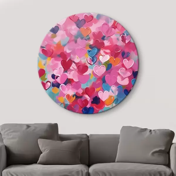 Apaļas gleznas Krāsainas sirdis, krāsas imitācija r43033