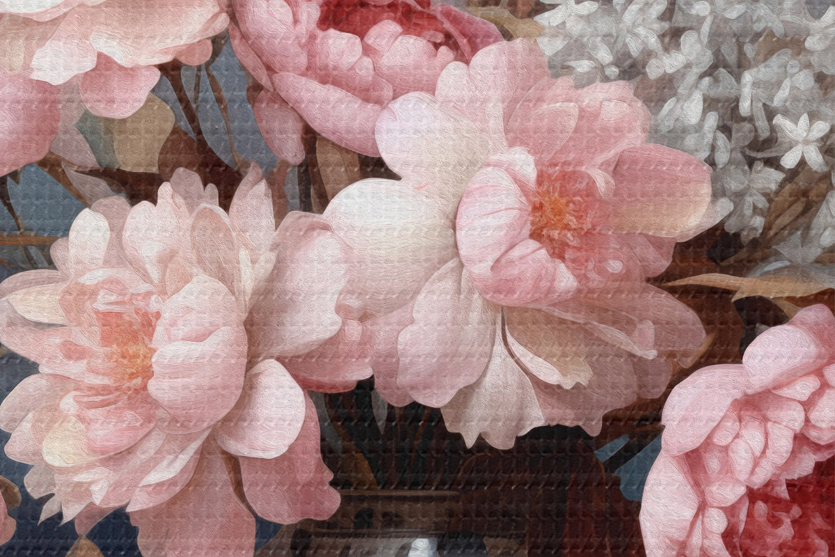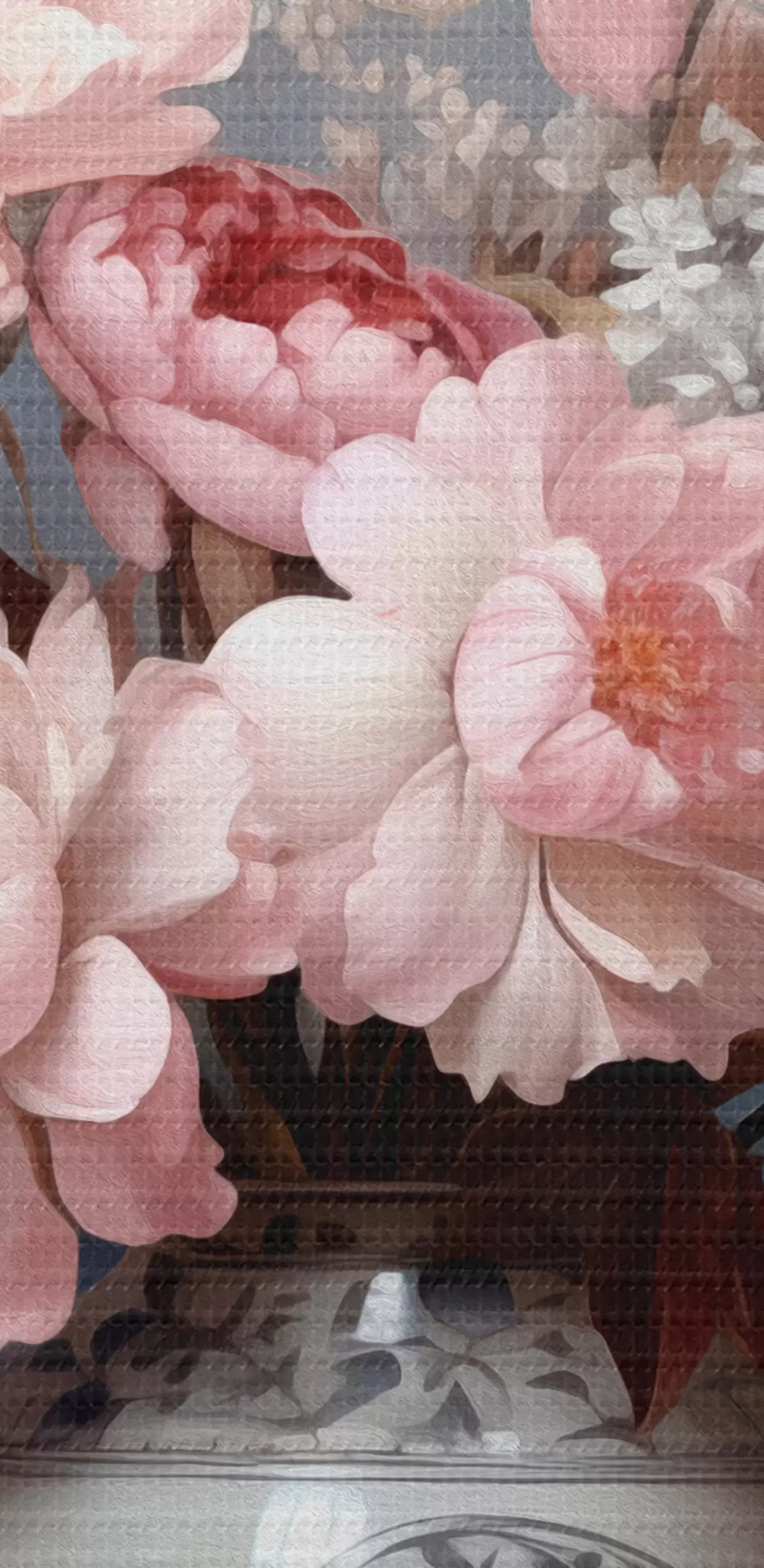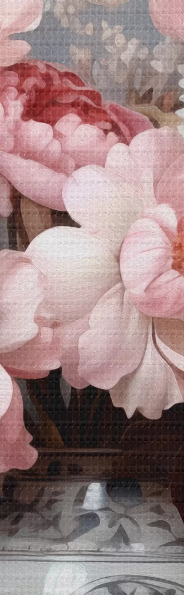 Smalkais diegu pinums uz šī audekla atgādina profesionālu mākslinieku audeklu virsmu.