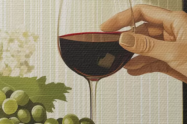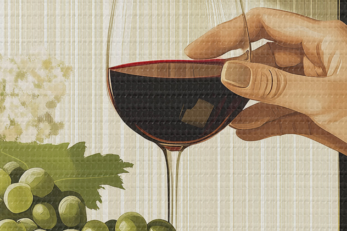 Attēls Vīnogas ar sieru, vīna pudele, vintage stila, balti ziedi Nr r43052