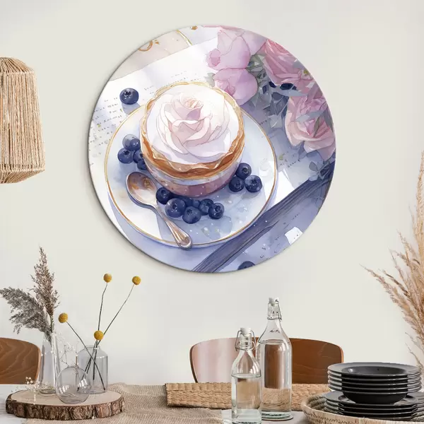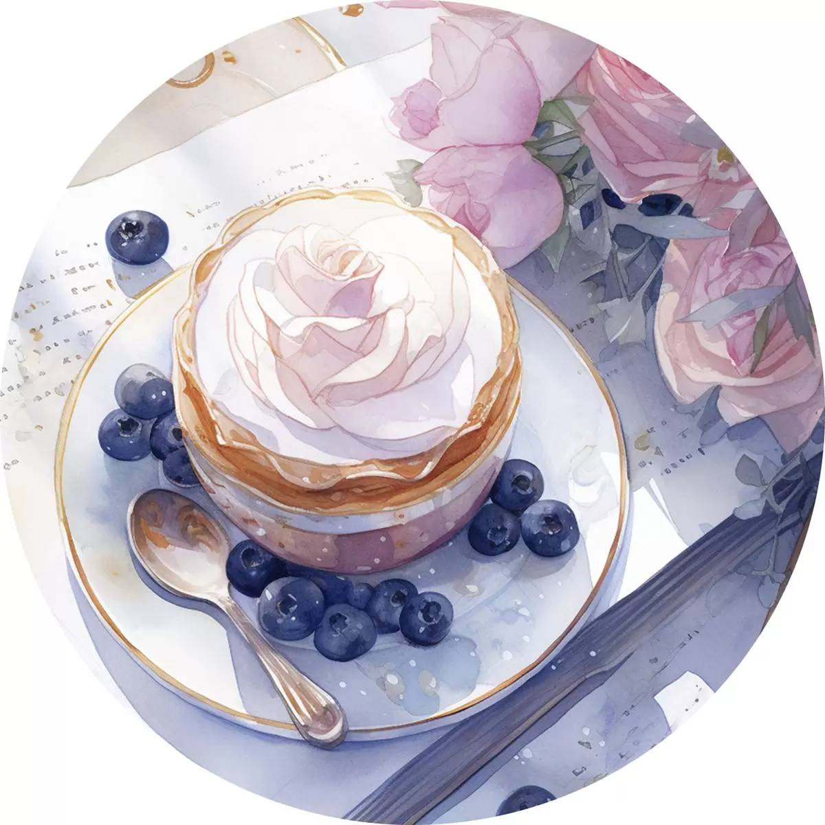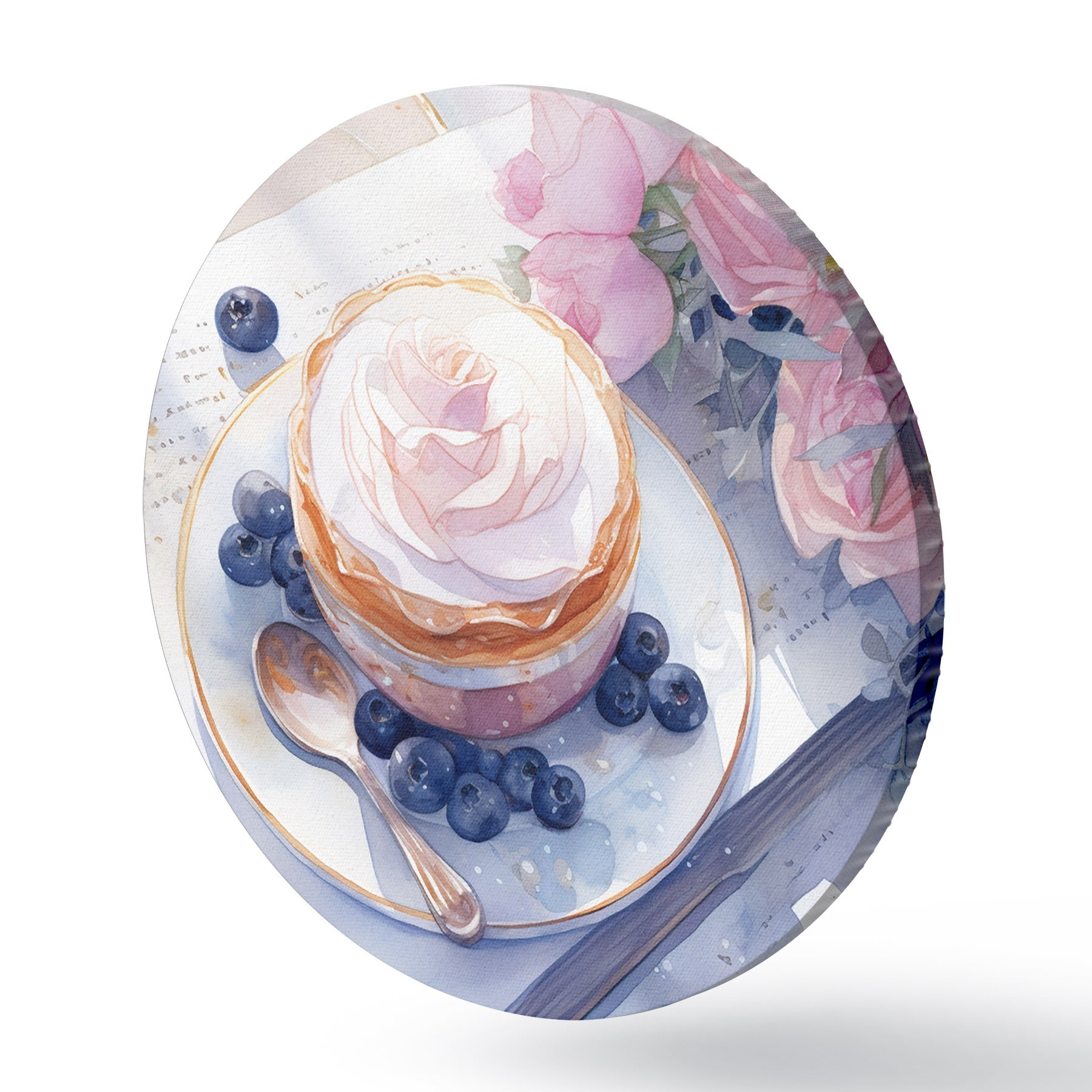 Apaļas gleznas Melleņu cupcake, boho stils, akvarelis, rozā rozes, poētisks r43053
