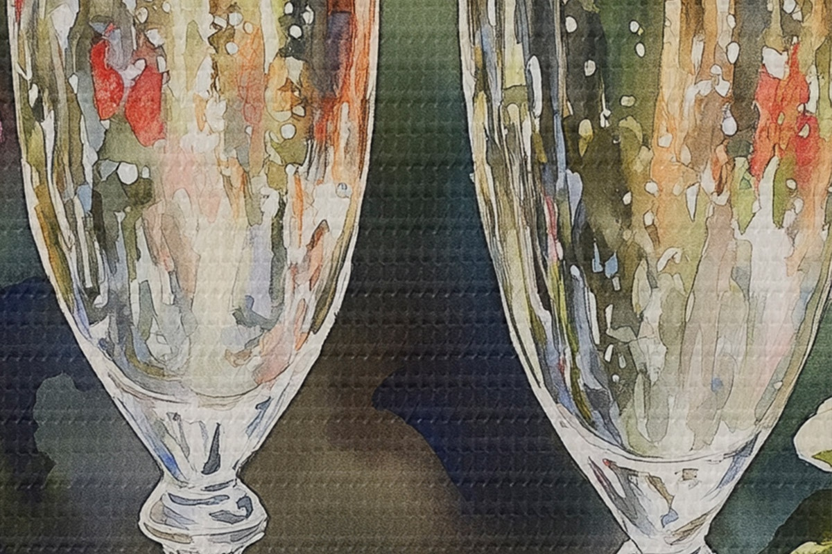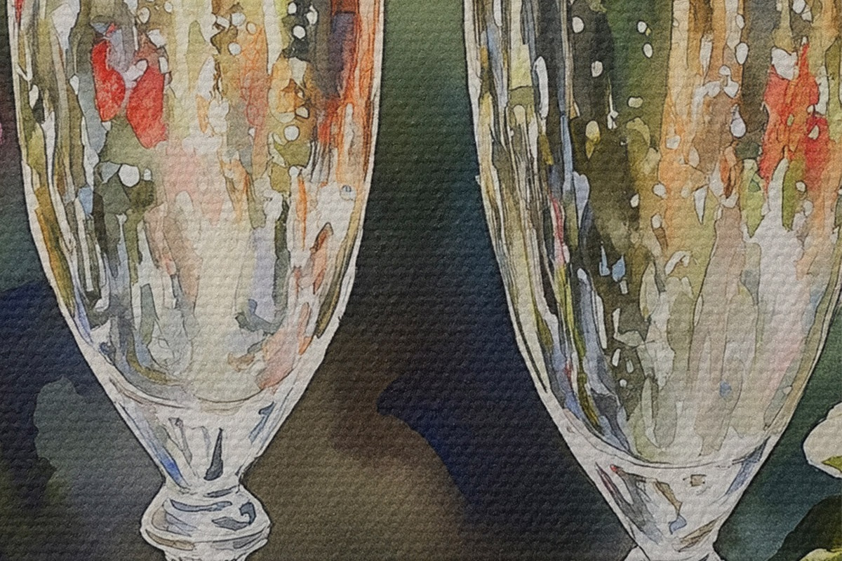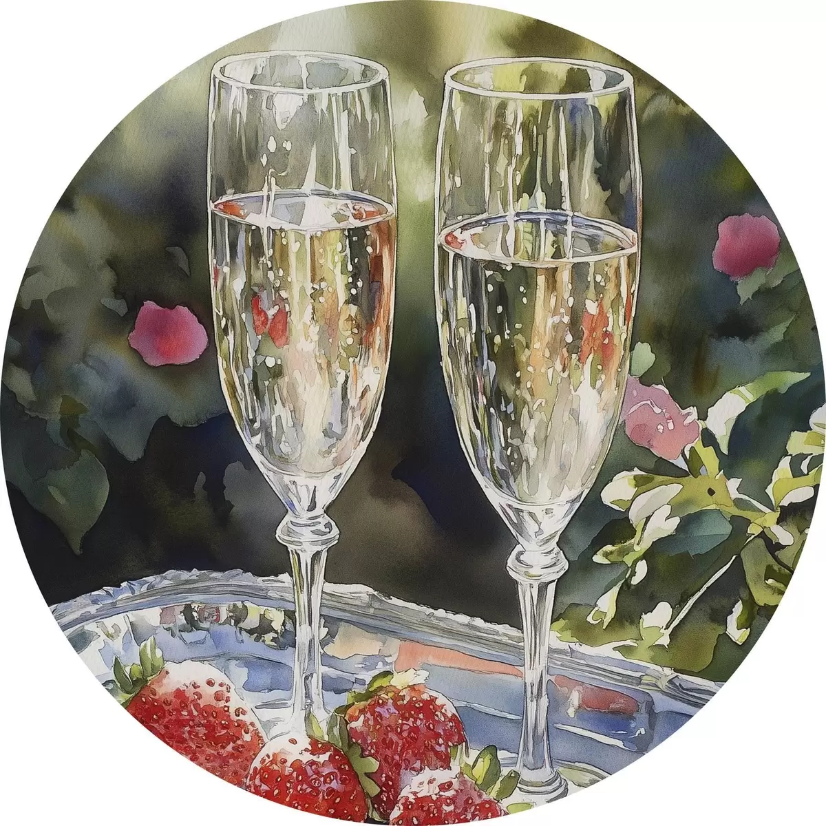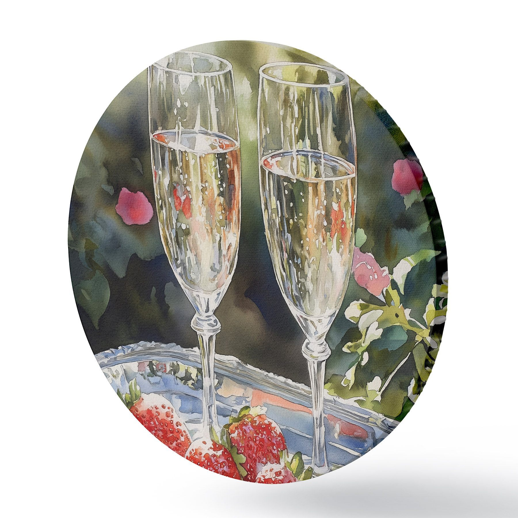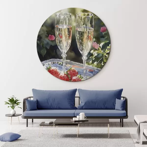 Apaļas gleznas Svētku un dzirkstošās šampanieša glāzes ar zemenēm uz paplātes r43057