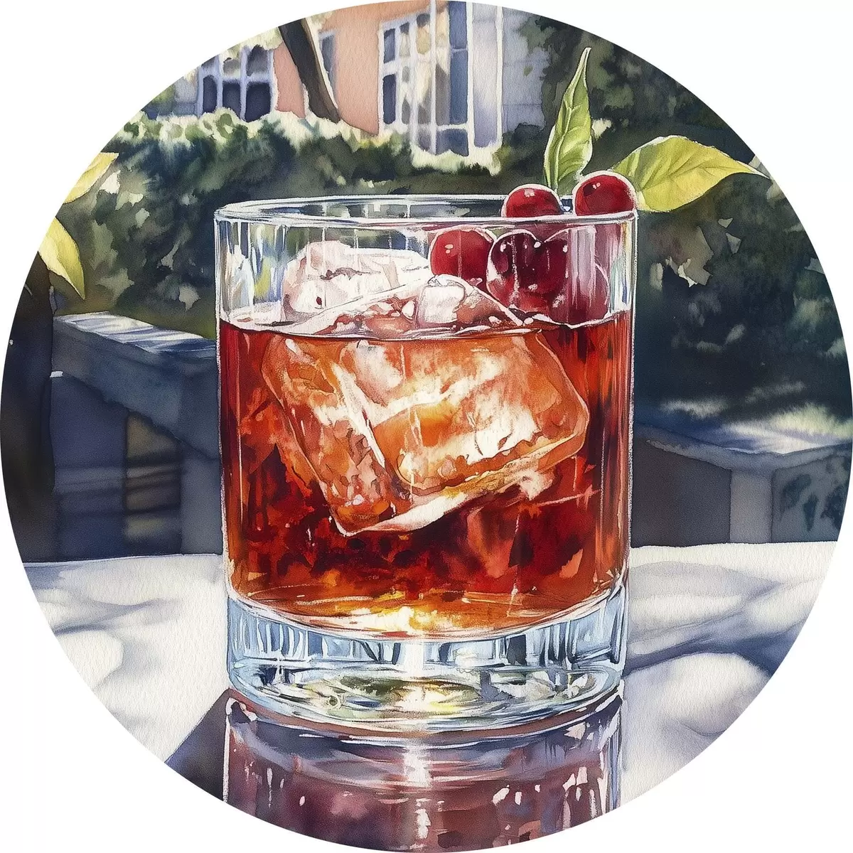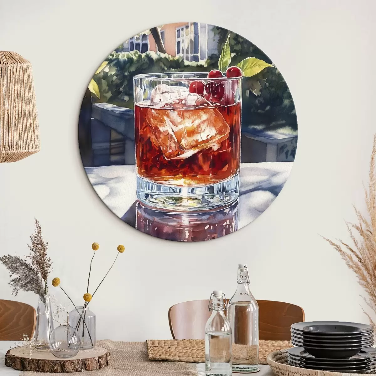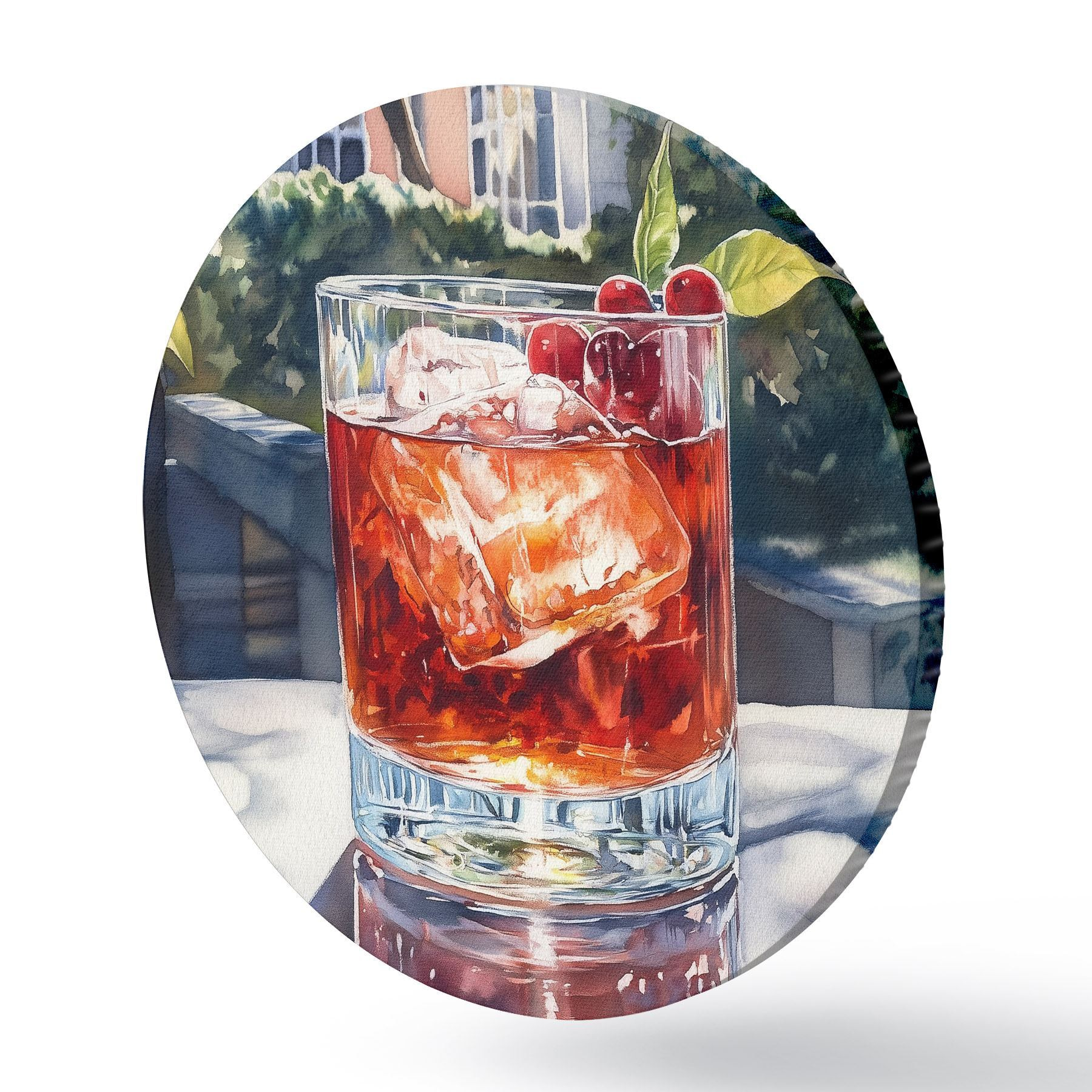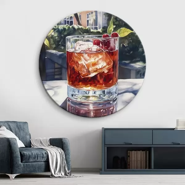 Apaļas gleznas Kokteilis ar ogām, akvareļu stils, estētiska pilsēta, vasaras daba r43059