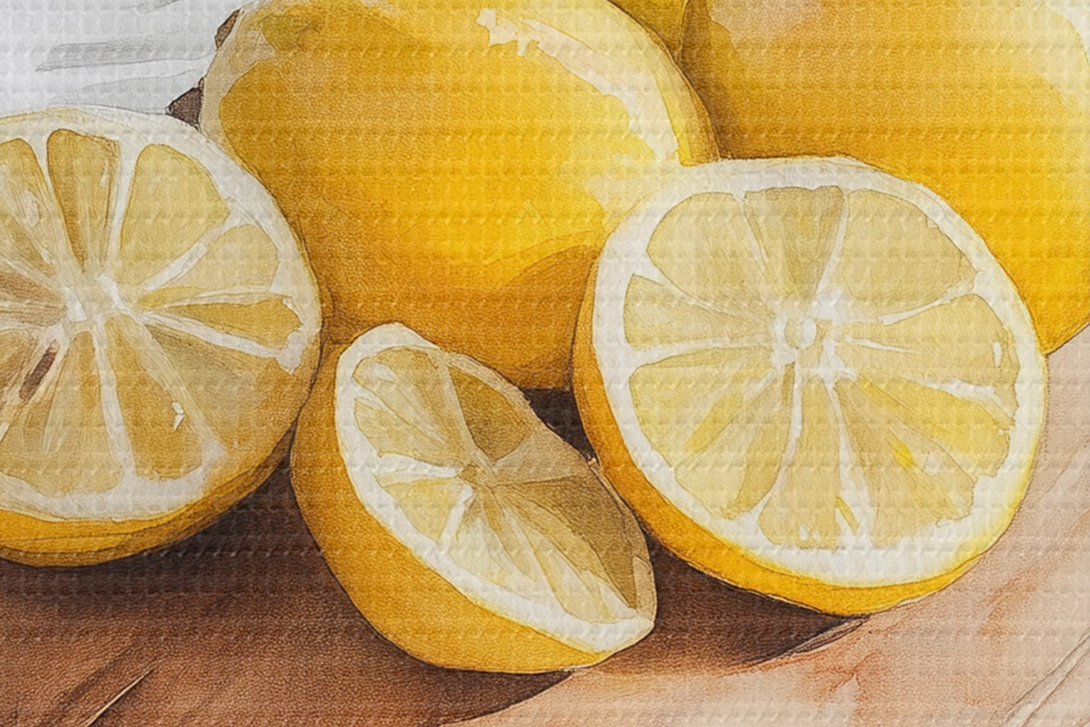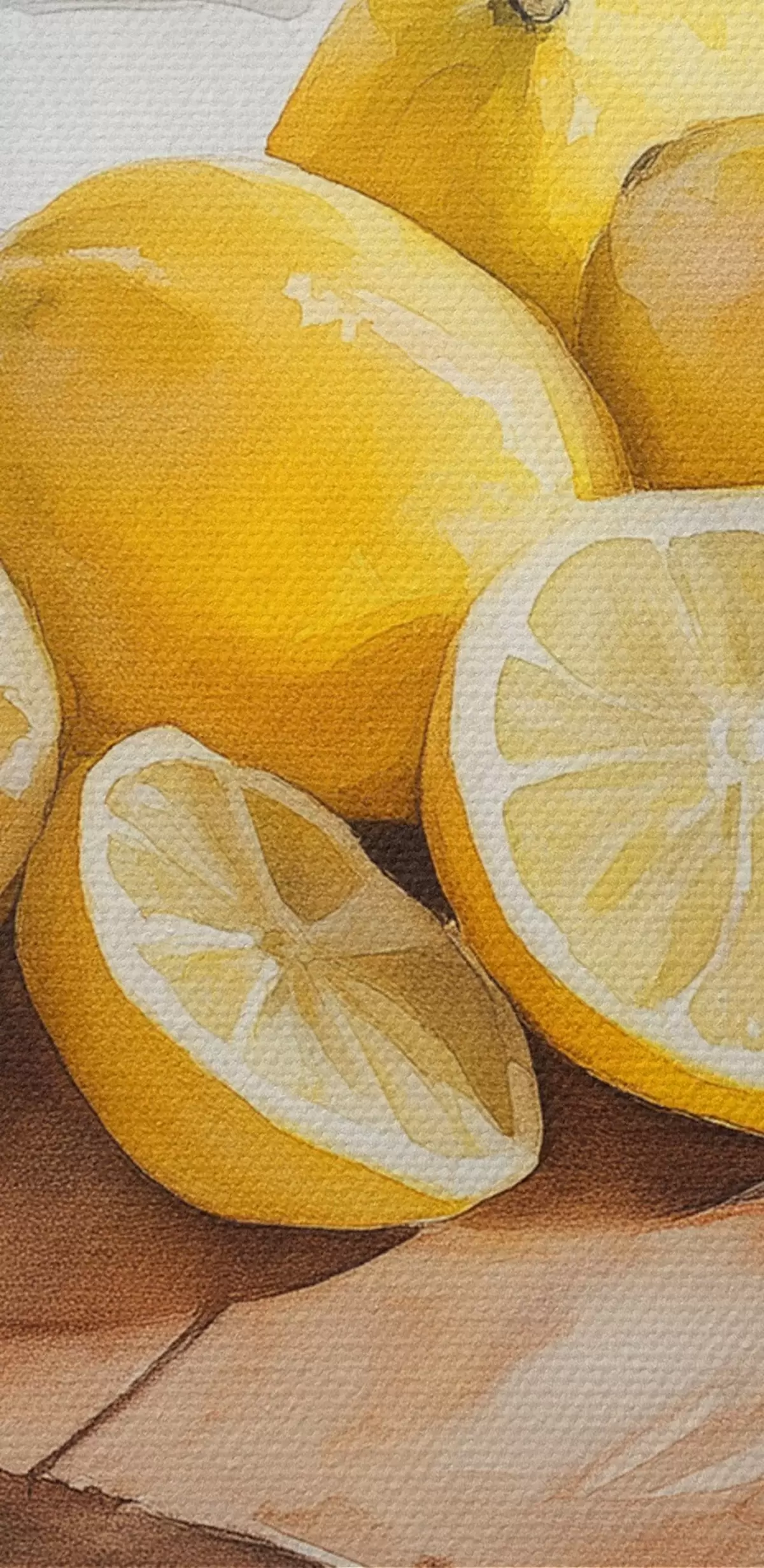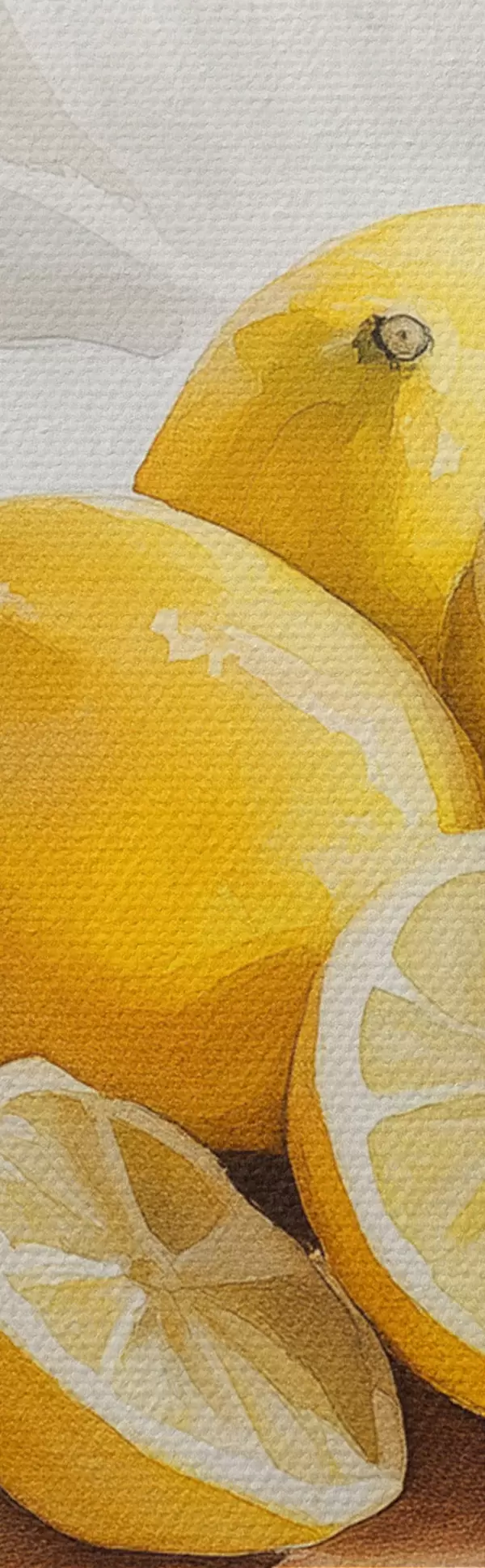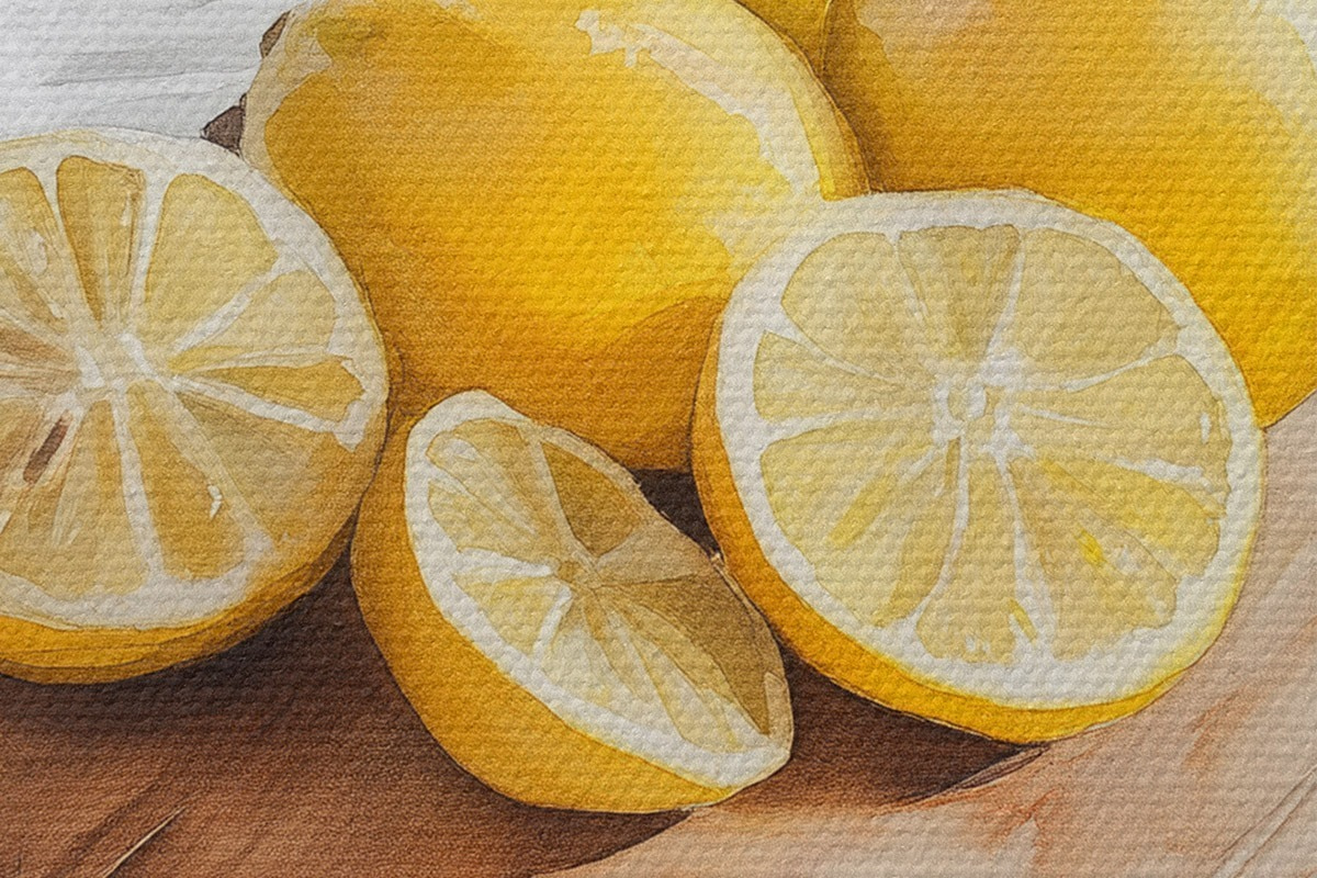 Apaļas gleznas Estētiski citroni uz koka dēļa, mājas apdare, dabiskais apgaismojums r43062