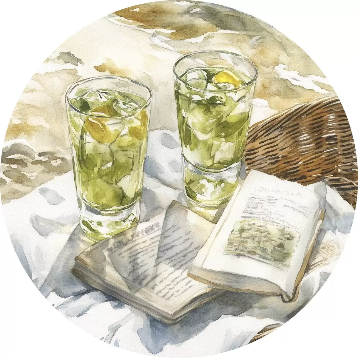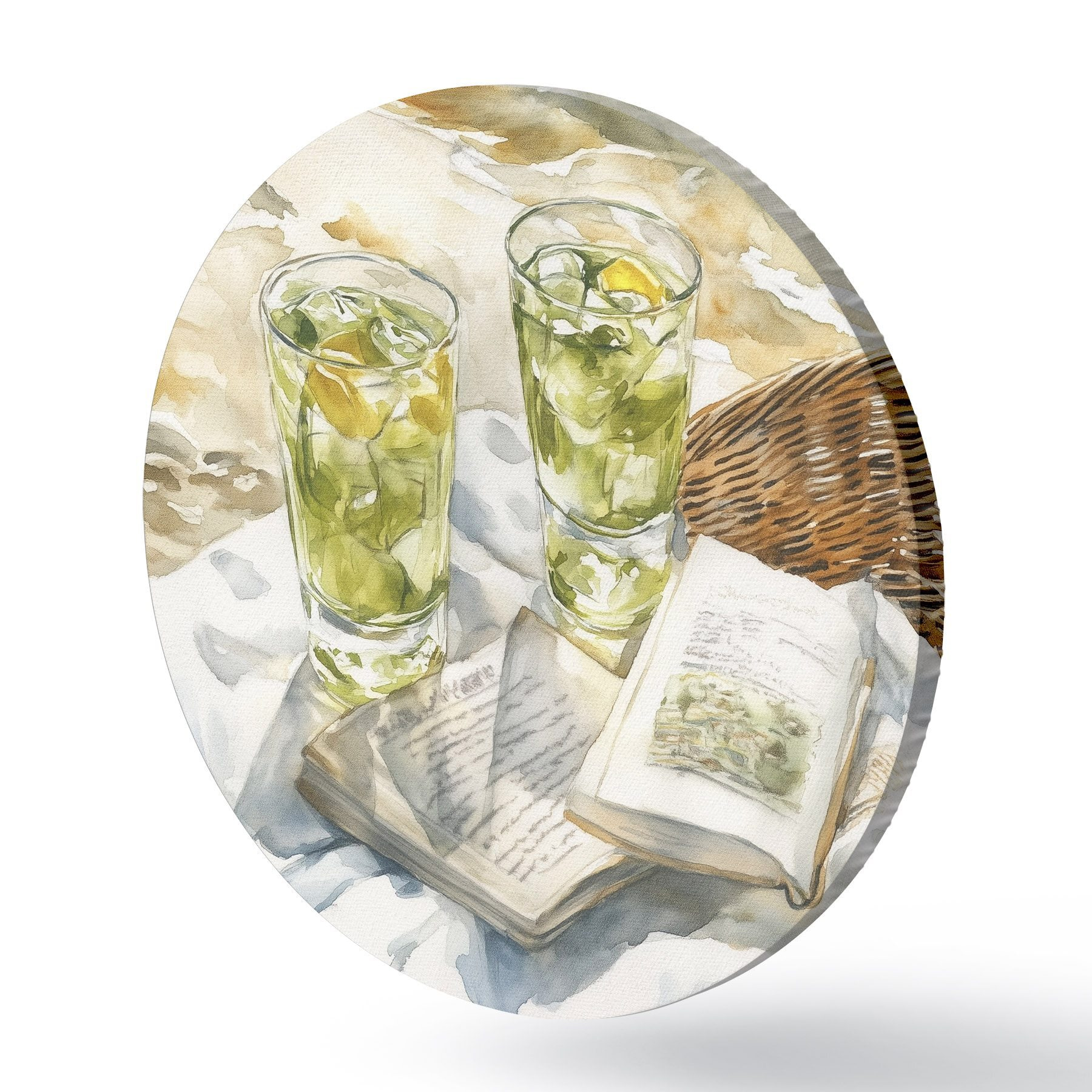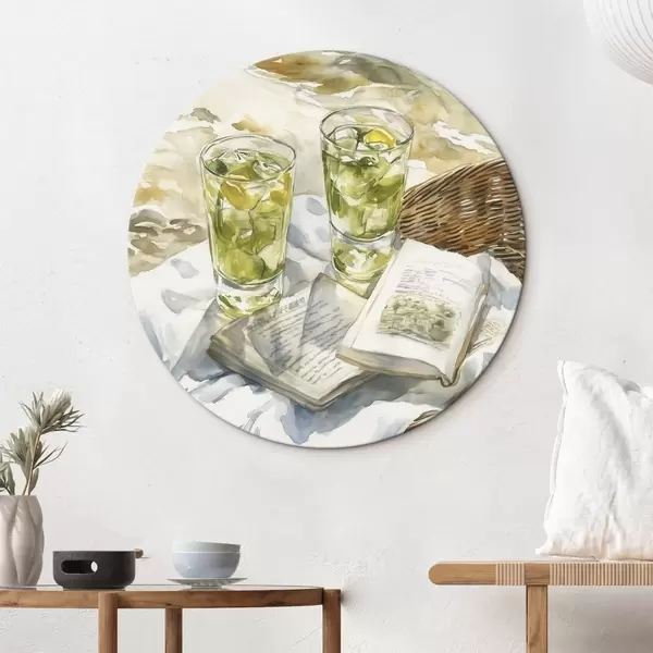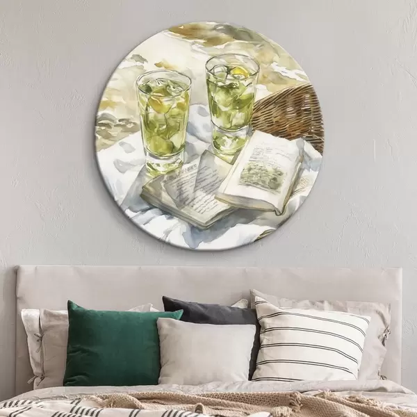 Apaļas gleznas Pikniks pie jūras, vasaras kokteiļi, dzeja, akvareļu stilā r43068