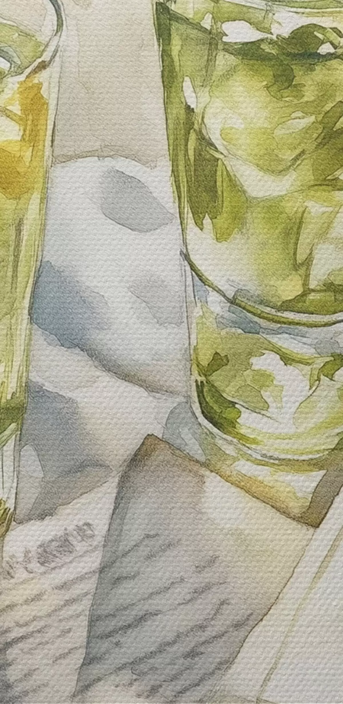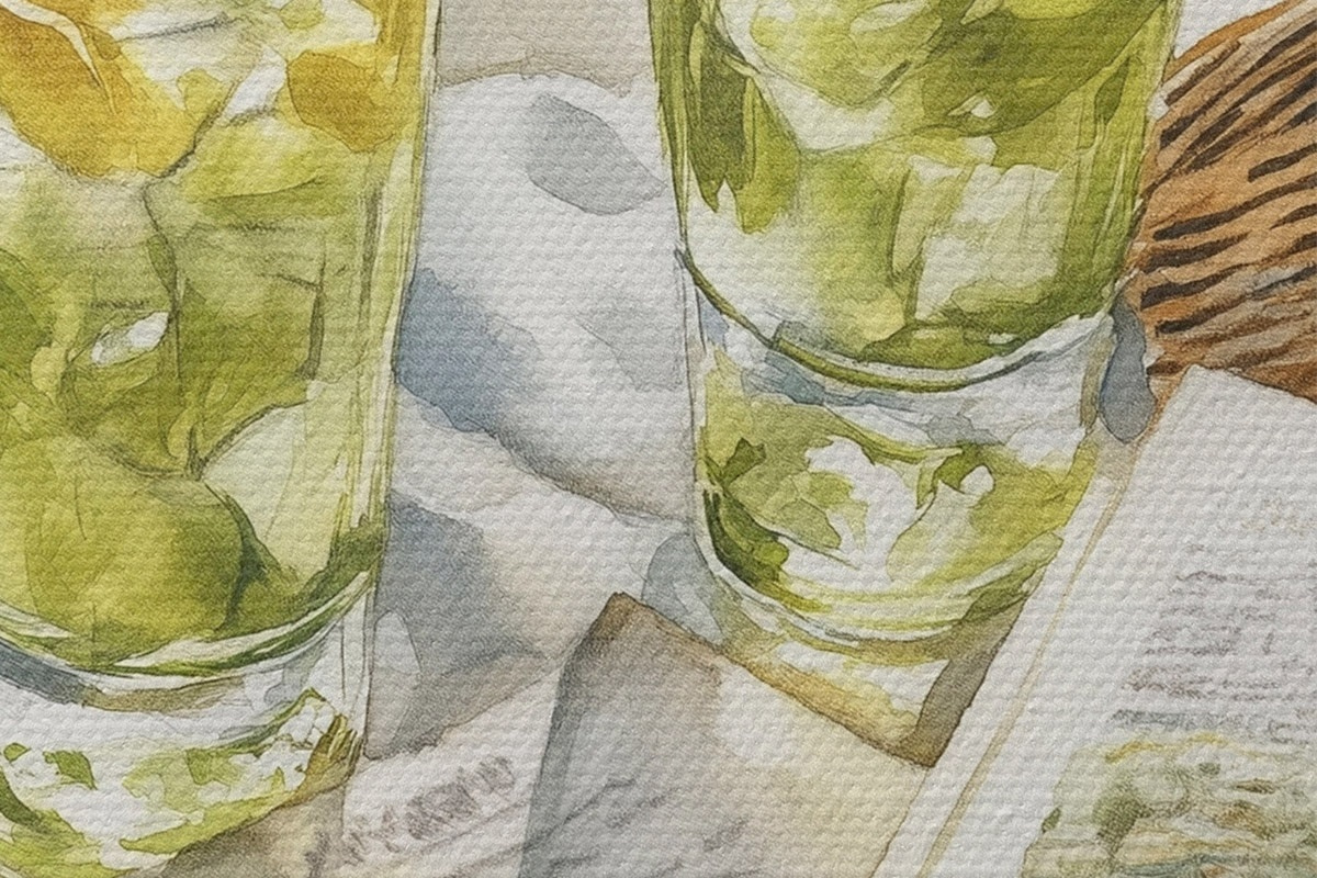 Attēls Pikniks pie jūras, vasaras kokteiļi, dzeja, akvareļu stilā Nr r43068