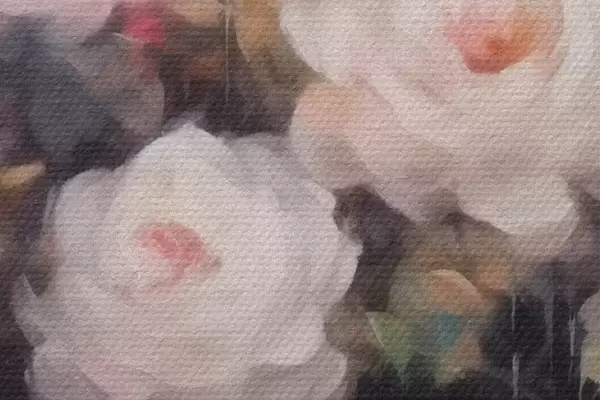 Smalkais diegu pinums uz šī audekla atgādina profesionālu mākslinieku audeklu virsmu.