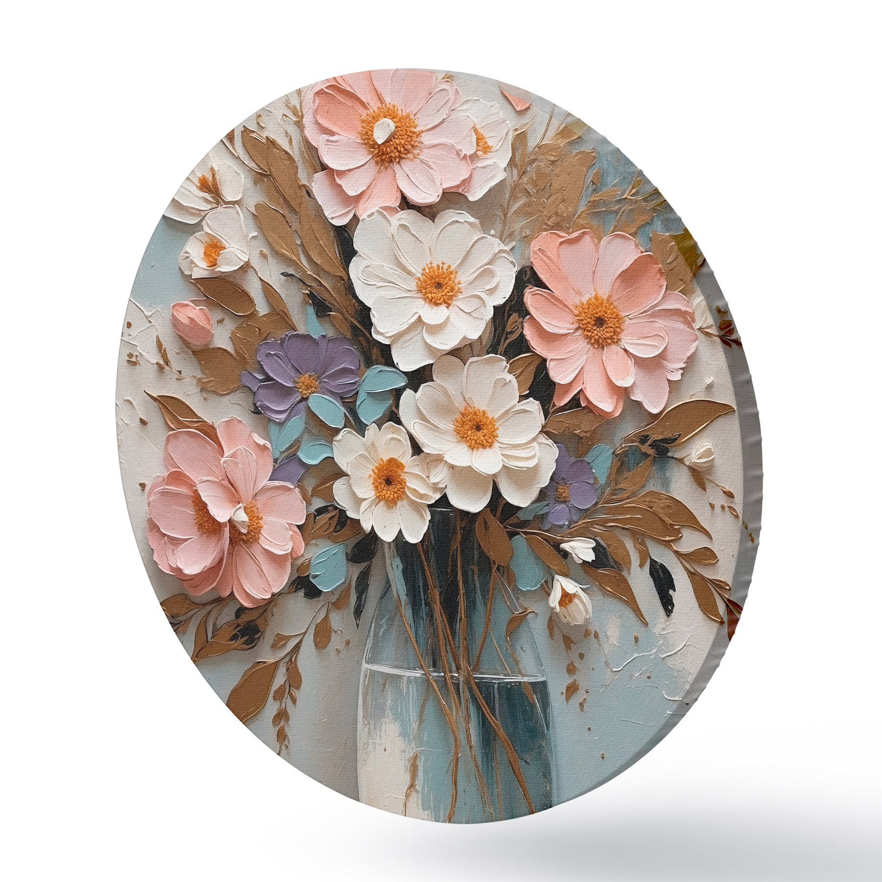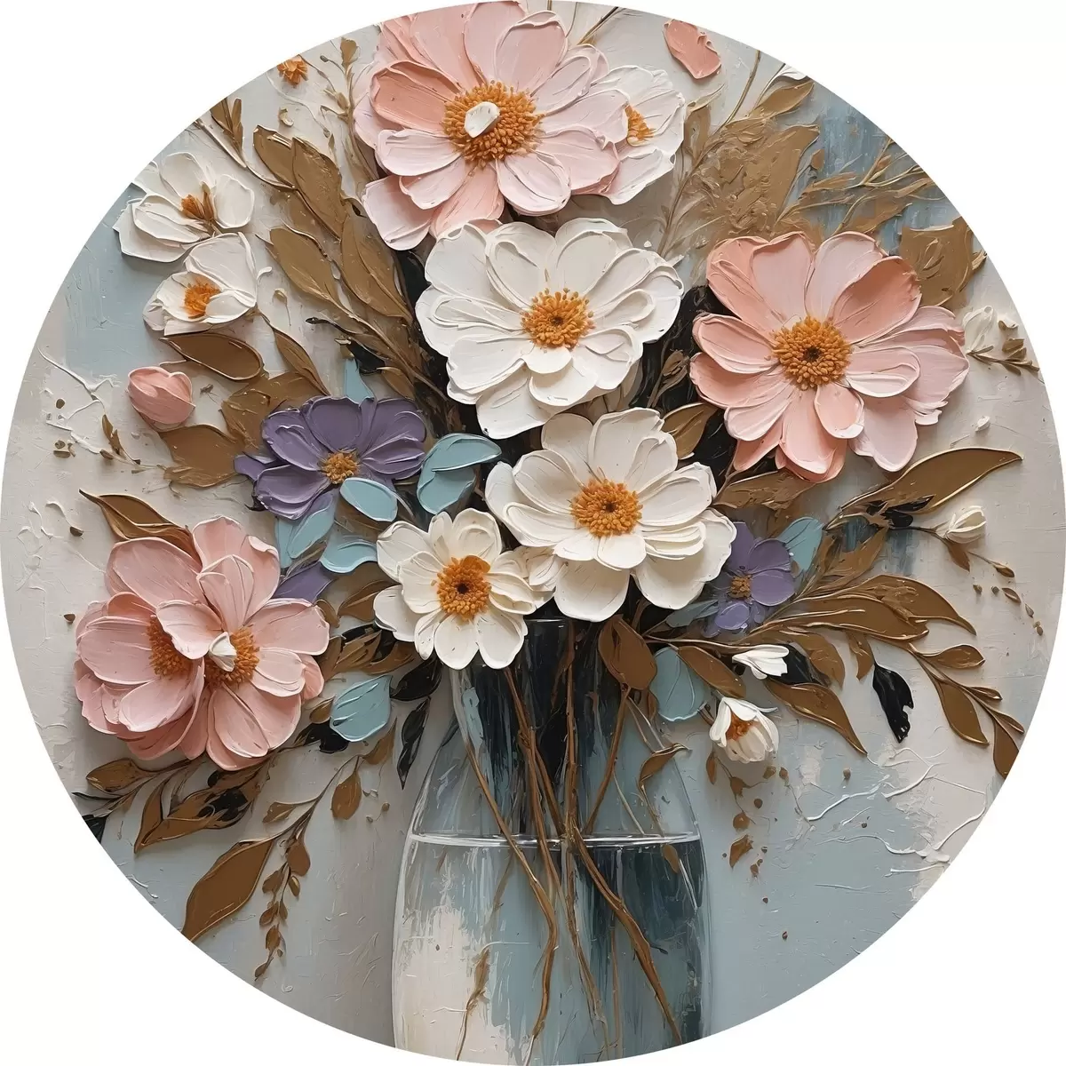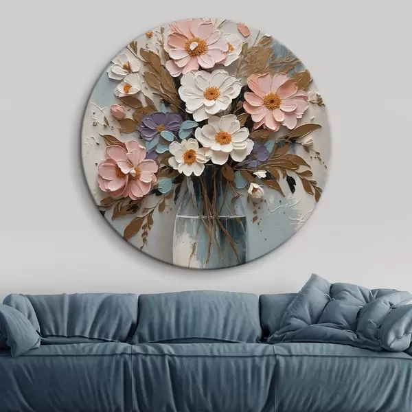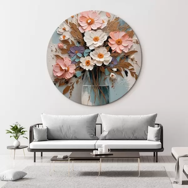 Apaļas gleznas Rozā un balti ziedi caurspīdīgā vāzē r43089