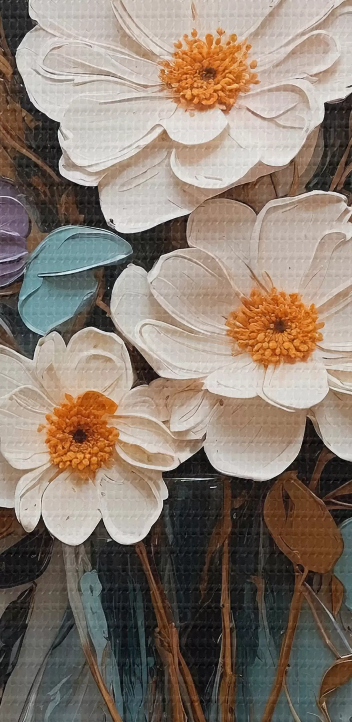 Smalkais diegu pinums uz šī audekla atgādina profesionālu mākslinieku audeklu virsmu.