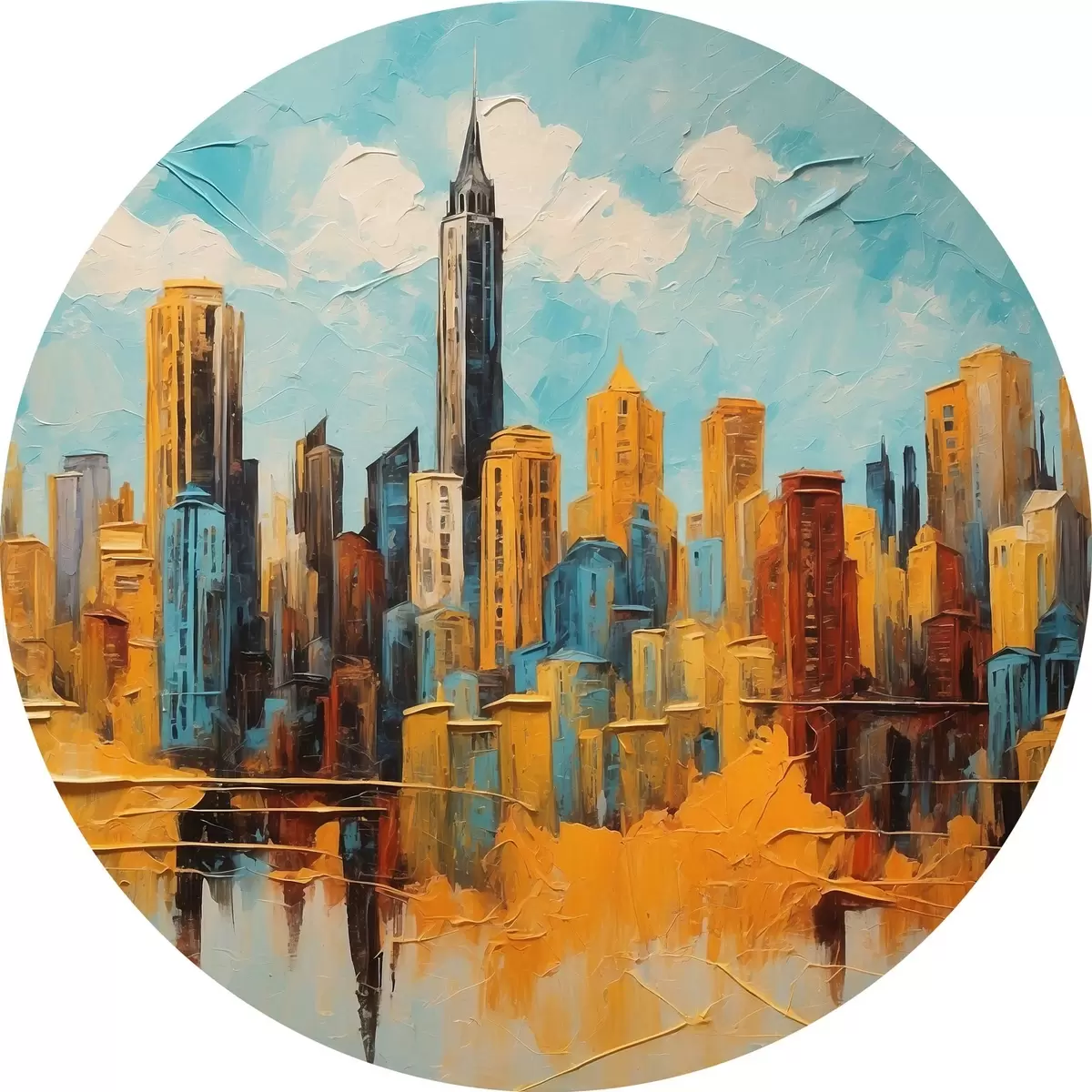 Apaļas gleznas Pilsēta eļļas gleznošanas stilā r43108