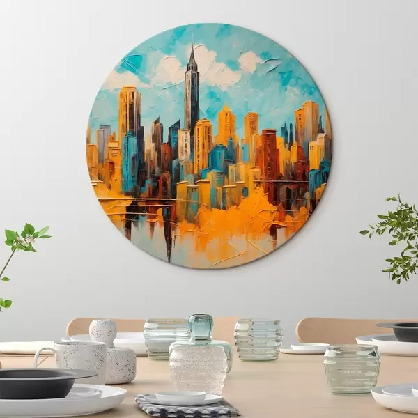 Apaļas gleznas Pilsēta eļļas gleznošanas stilā r43108