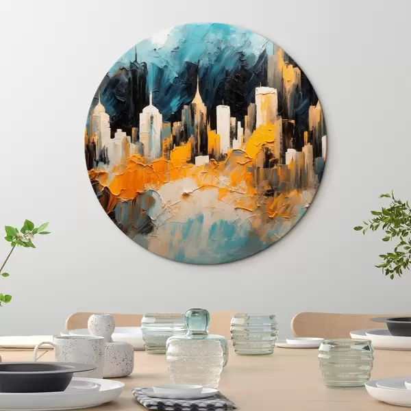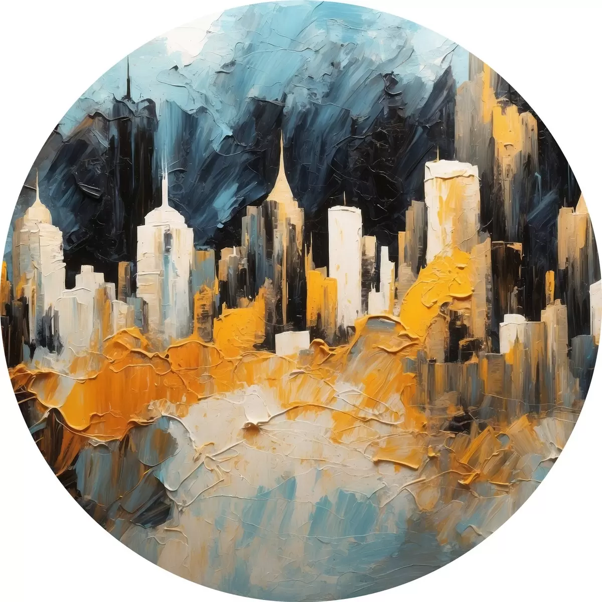 Apaļas gleznas Abstraktā pilsēta eļļas gleznošanas stilā r43109