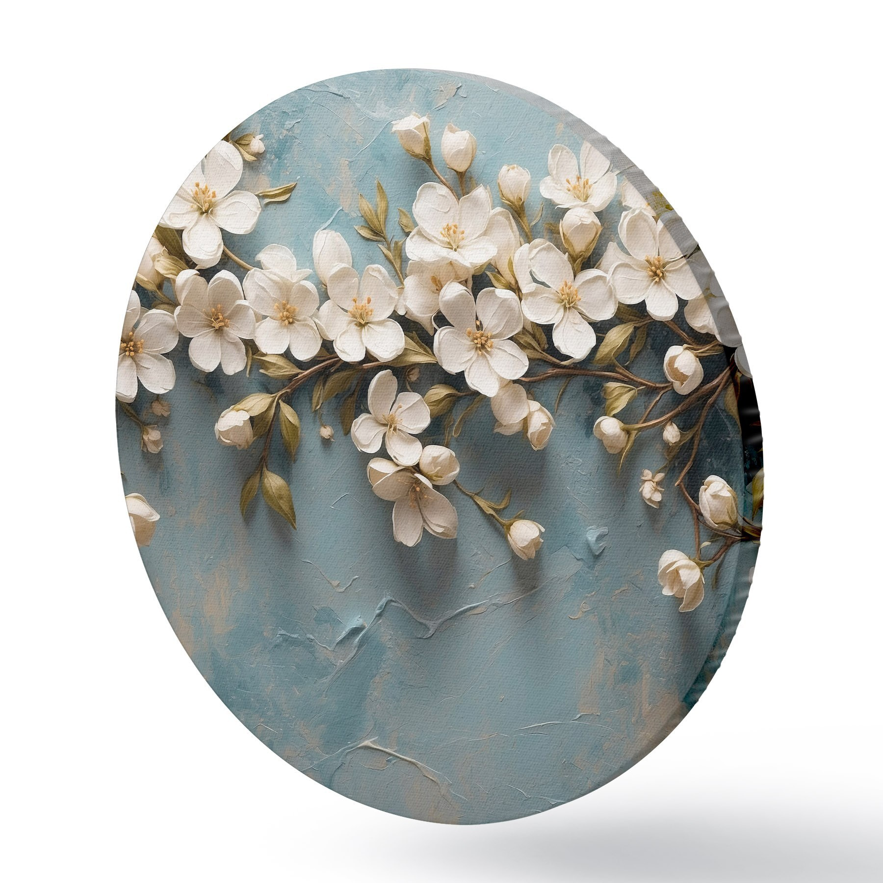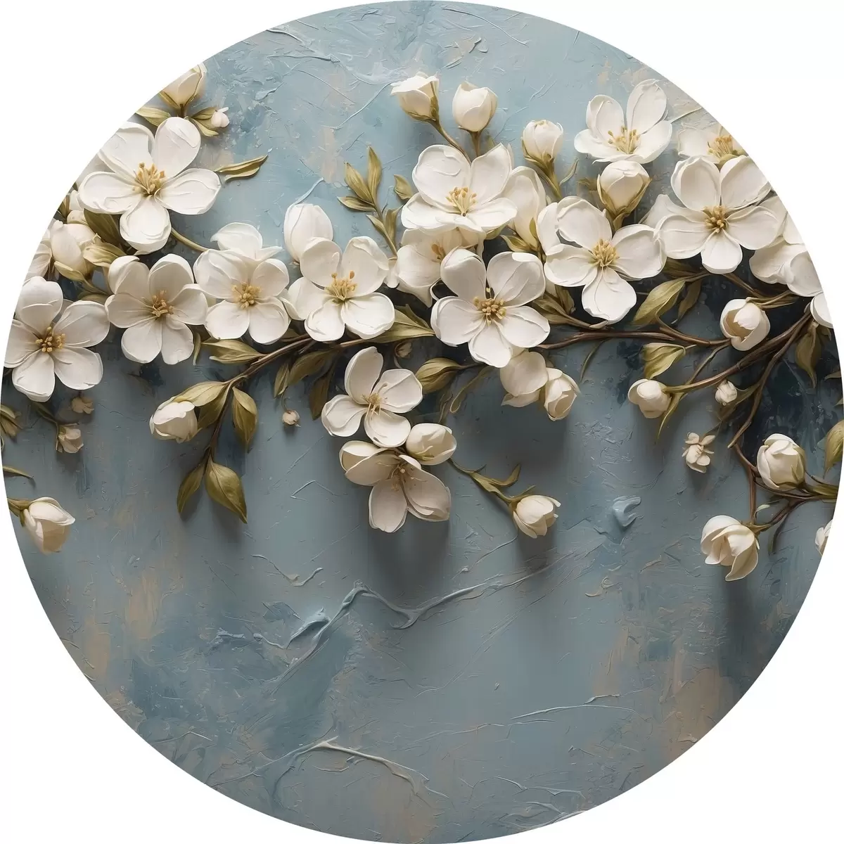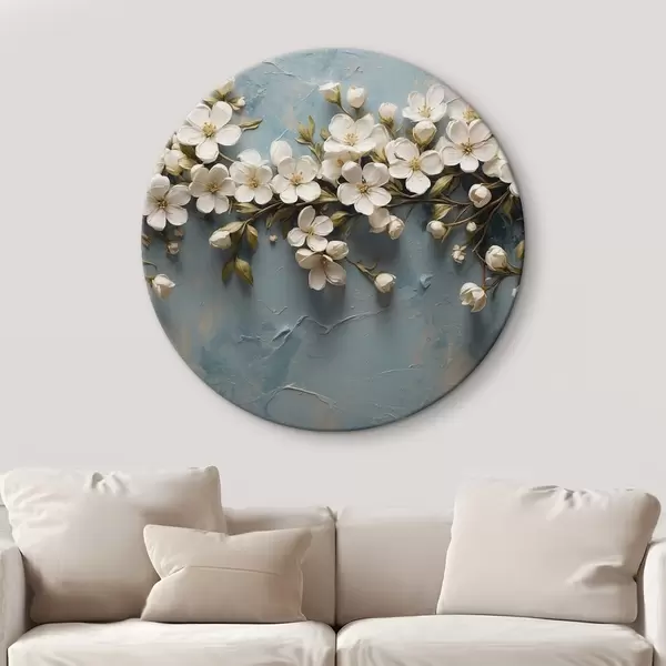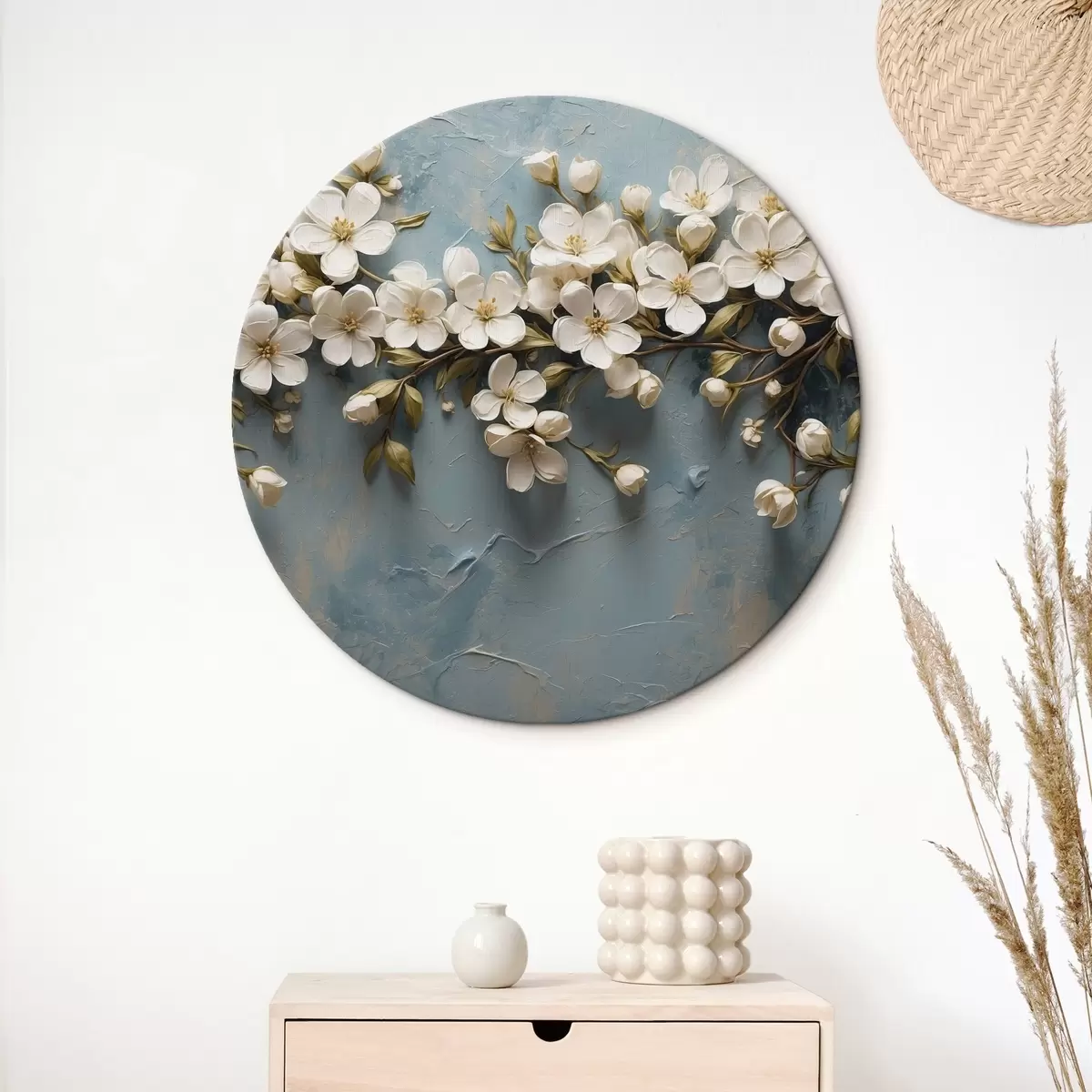 Apaļas gleznas Zariņš ar ziediem uz fona akrila stilā r43111