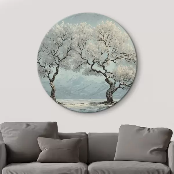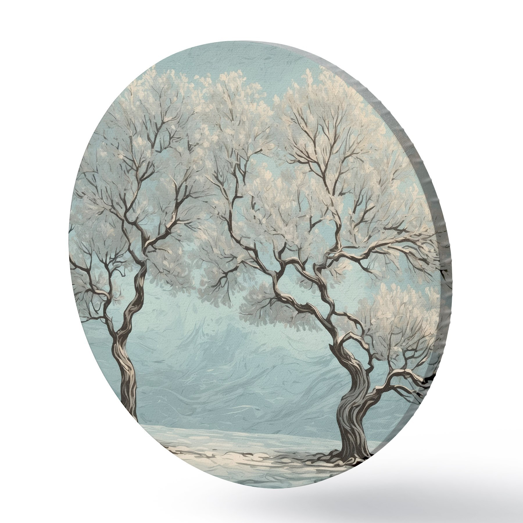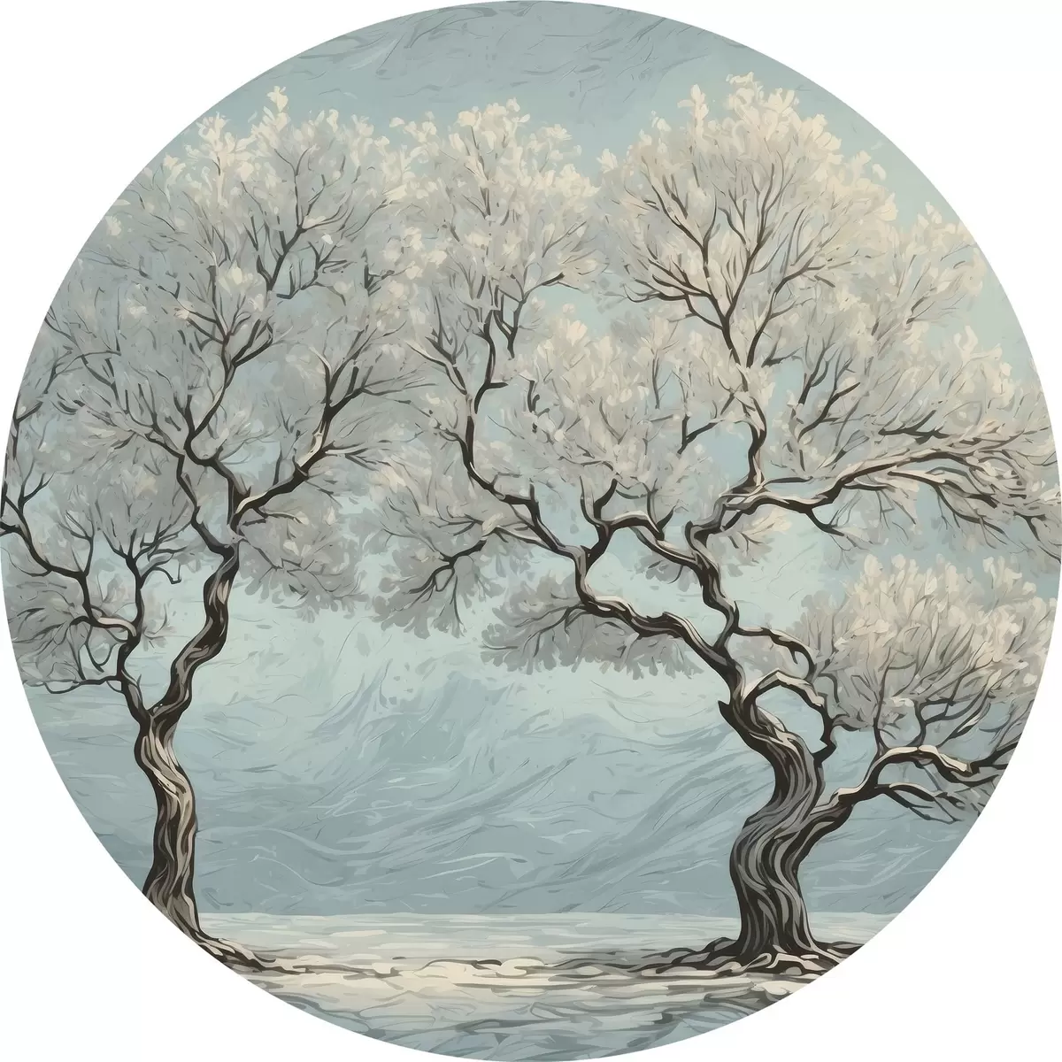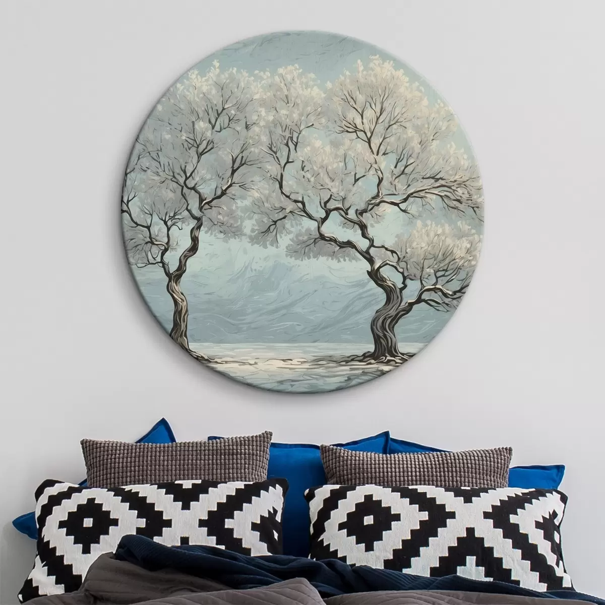 Apaļas gleznas Balti koki akrila glezniecības stilā r43112
