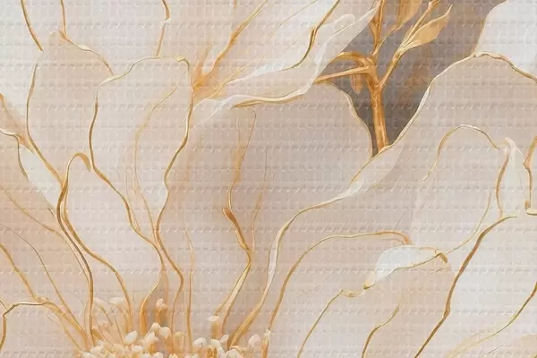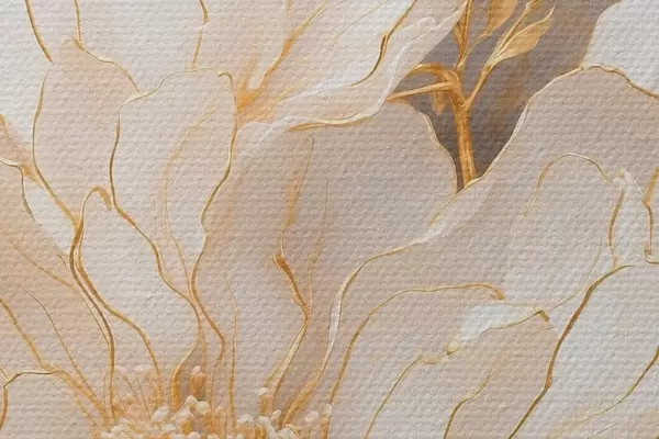 Attēls Balts zieds ar lapām akrila glezniecības stilā Nr r43115