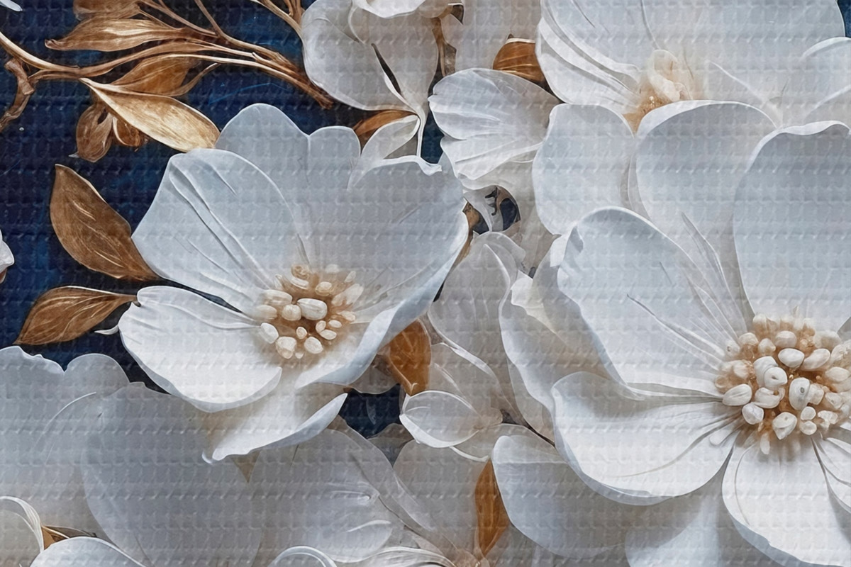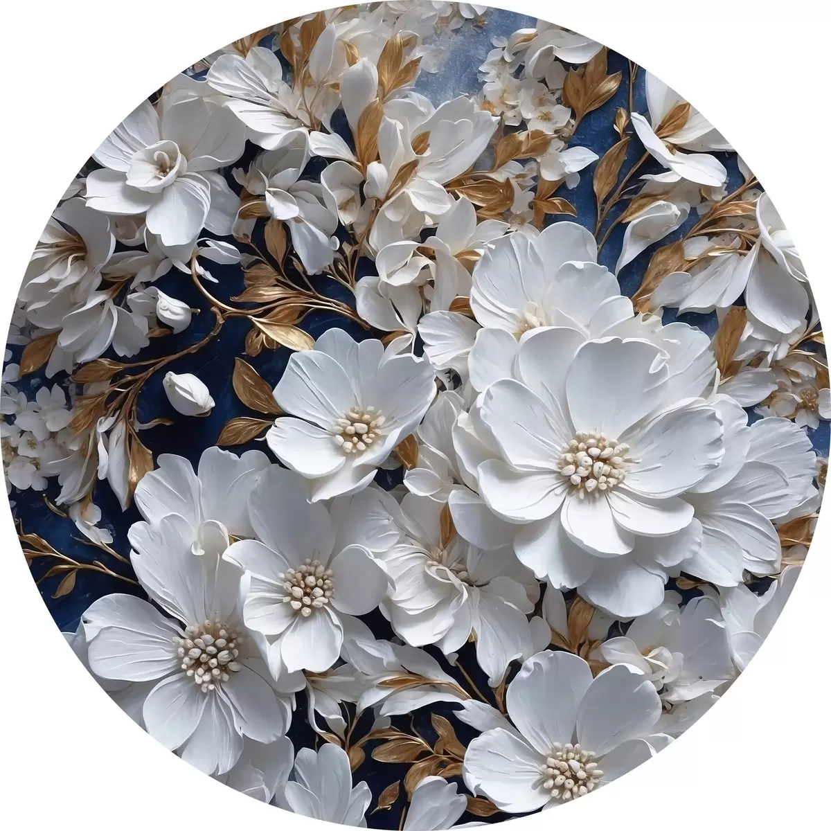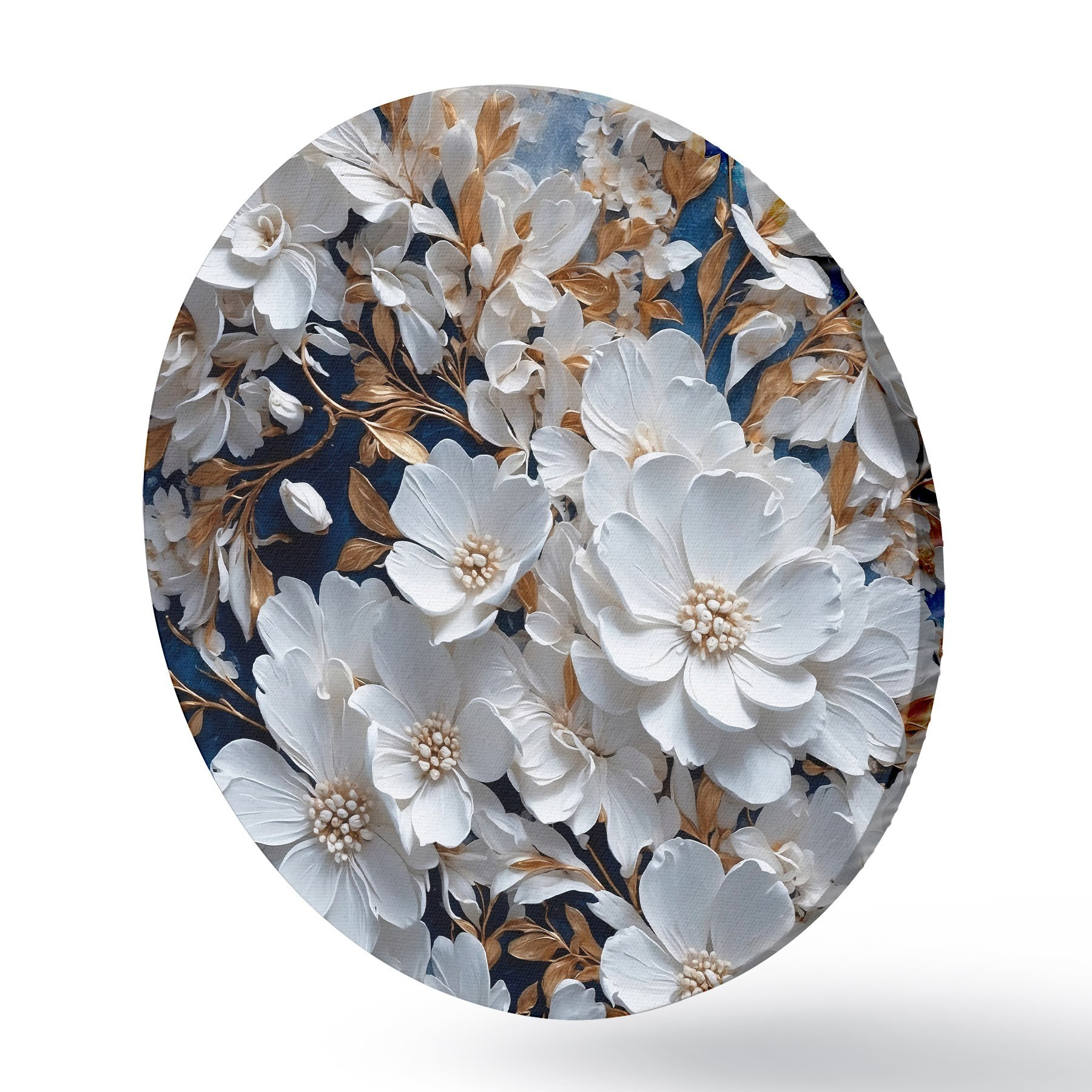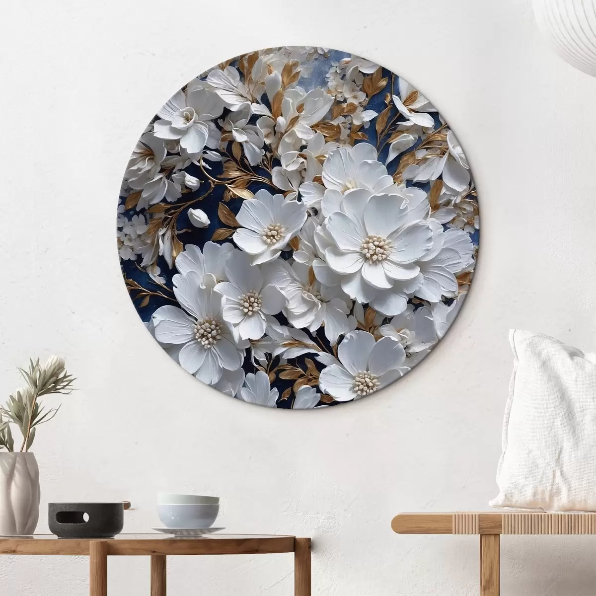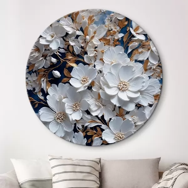Apaļas gleznas Balti ziedi uz zila fona r43116