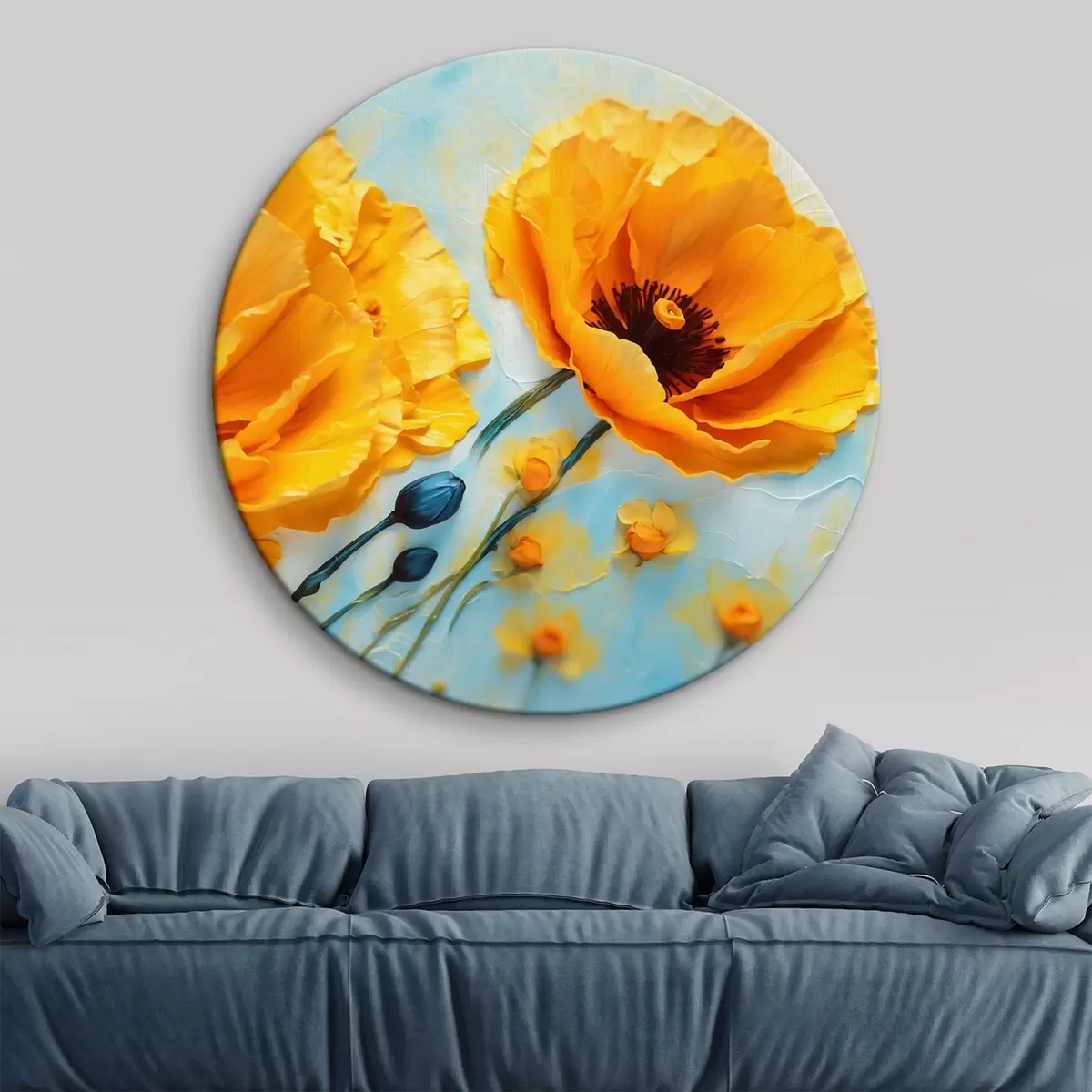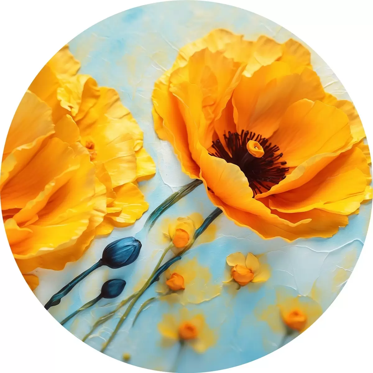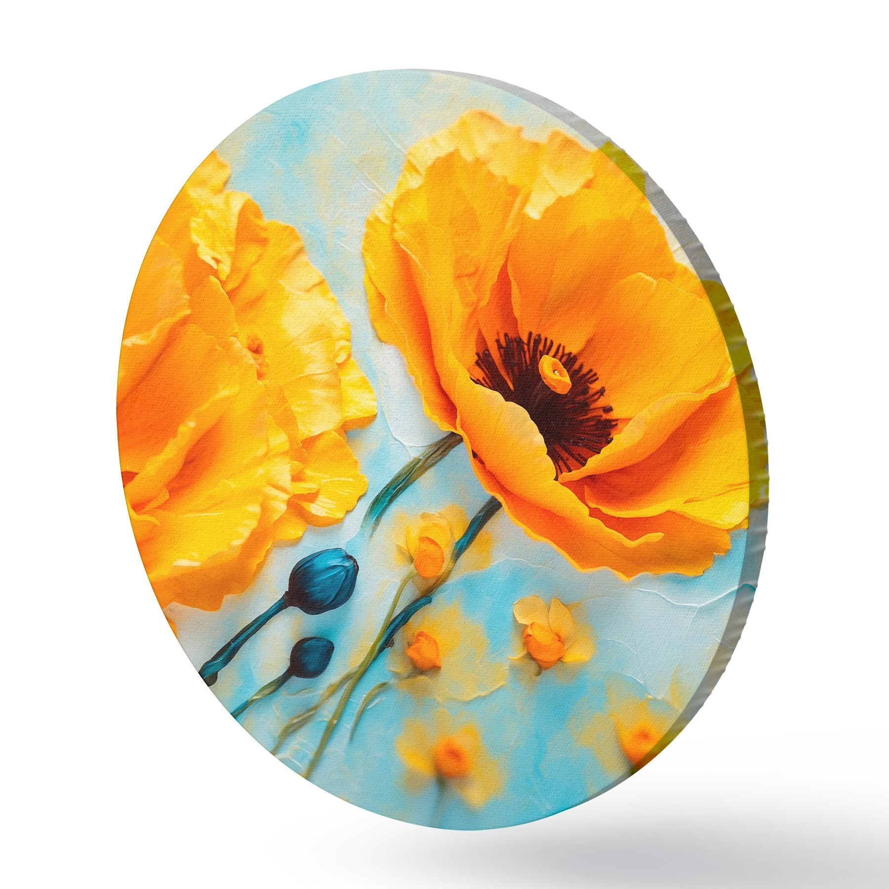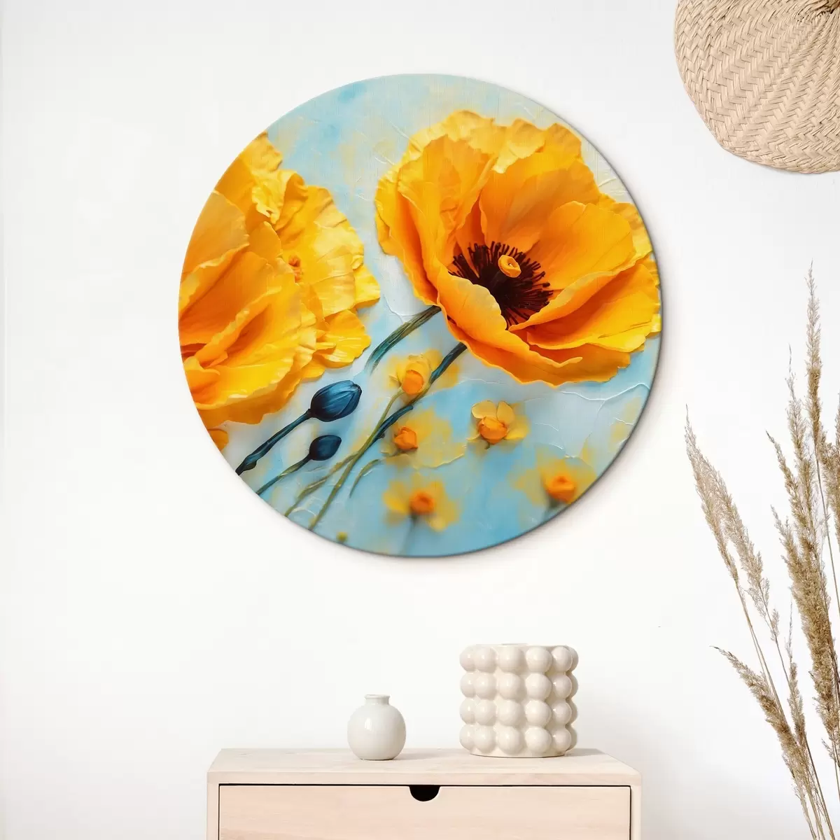 Apaļas gleznas Dzeltenas magones uz neskaidra fona r43118