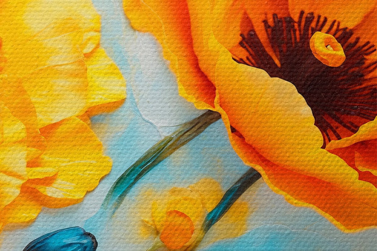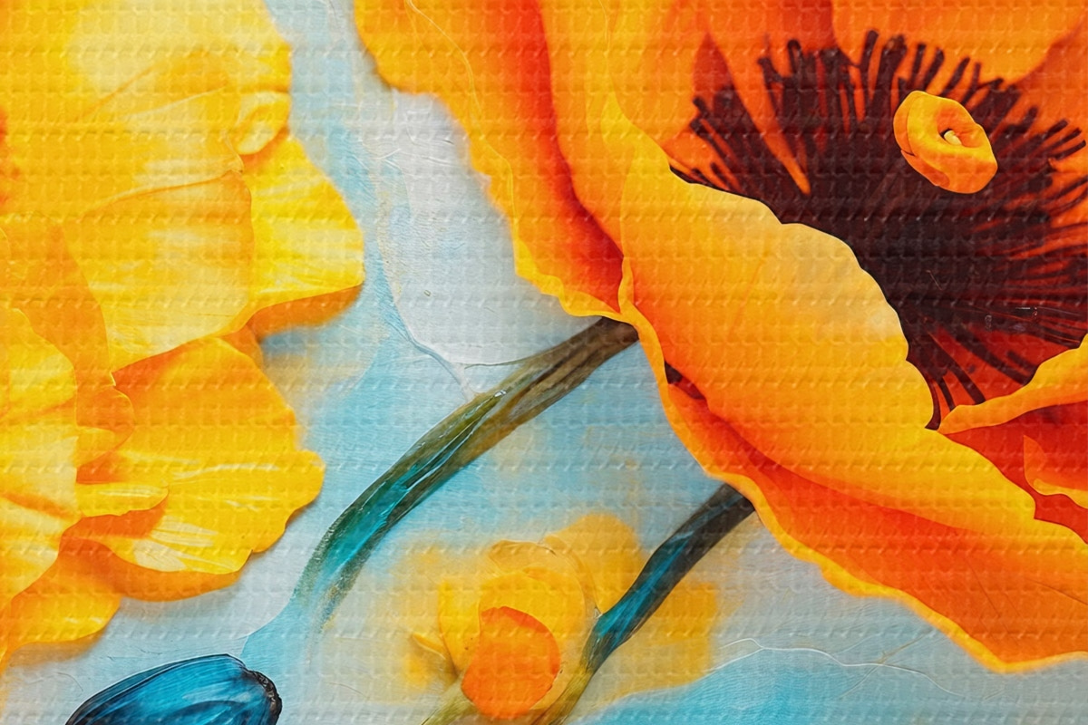 Smalkais diegu pinums uz šī audekla atgādina profesionālu mākslinieku audeklu virsmu.