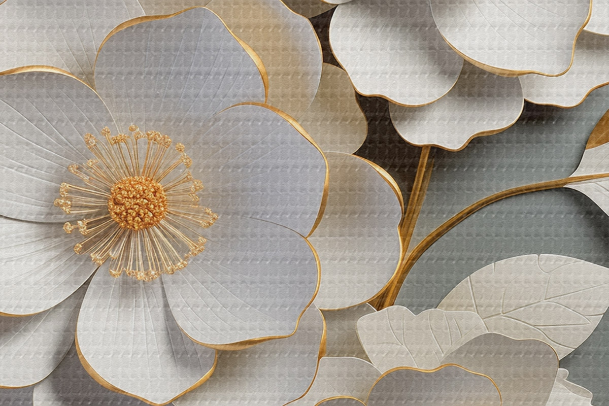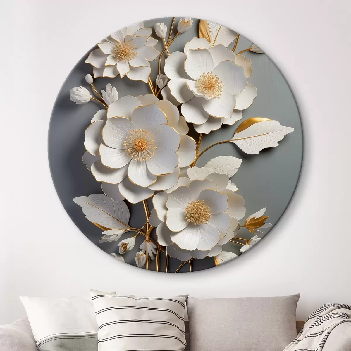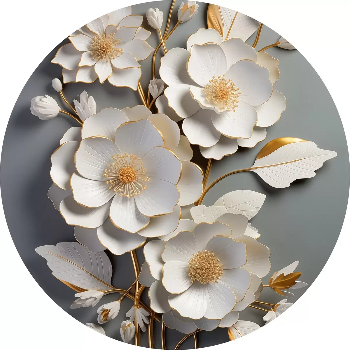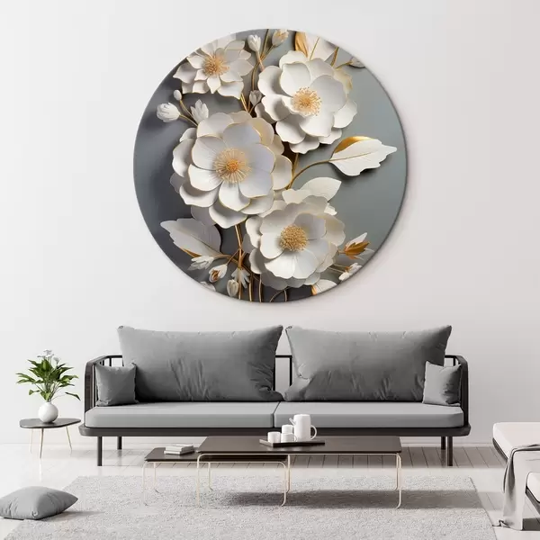 Apaļas gleznas Apjoma ziedi uz pelēka fona r43128