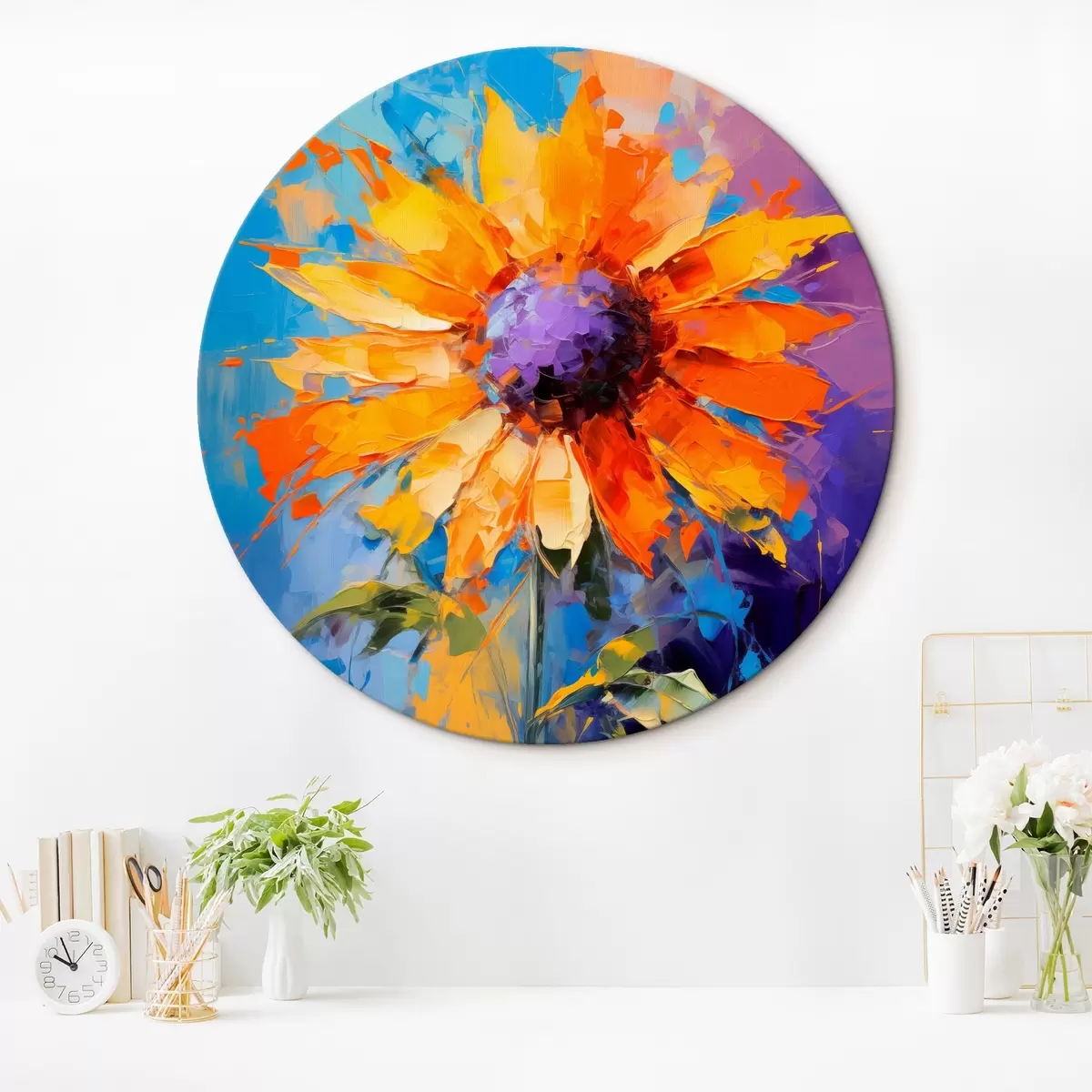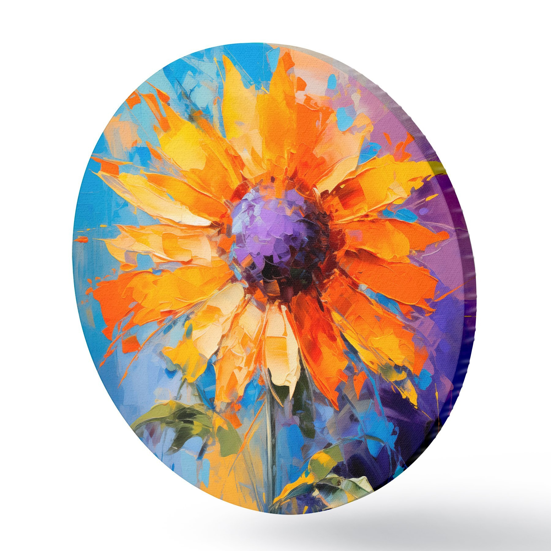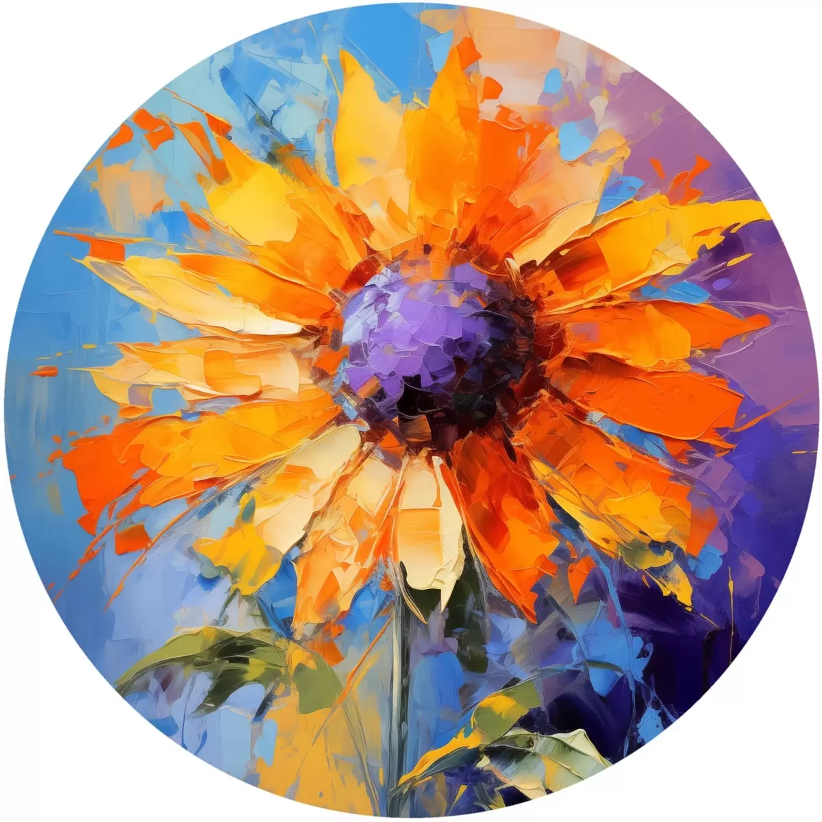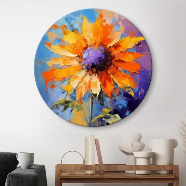 Apaļas gleznas Spilgtas saulespuķes abstraktā glezniecības stilā r43133