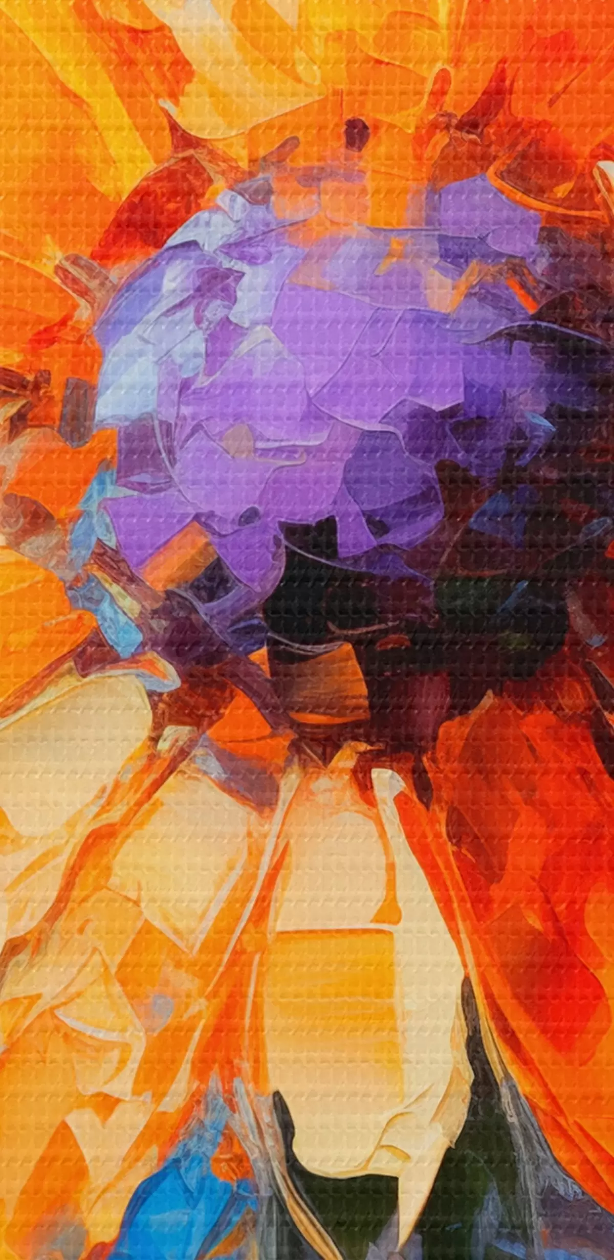 Smalkais diegu pinums uz šī audekla atgādina profesionālu mākslinieku audeklu virsmu.
