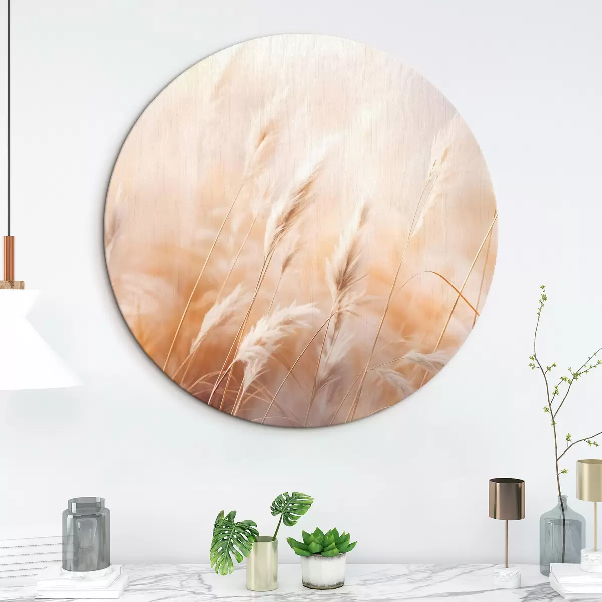 Apaļas gleznas Pampasa zāle ar mīkstu, izkliedētu gaismu, radot siltu, fons ir pasteļtoņu krāsu sajaukums r43157