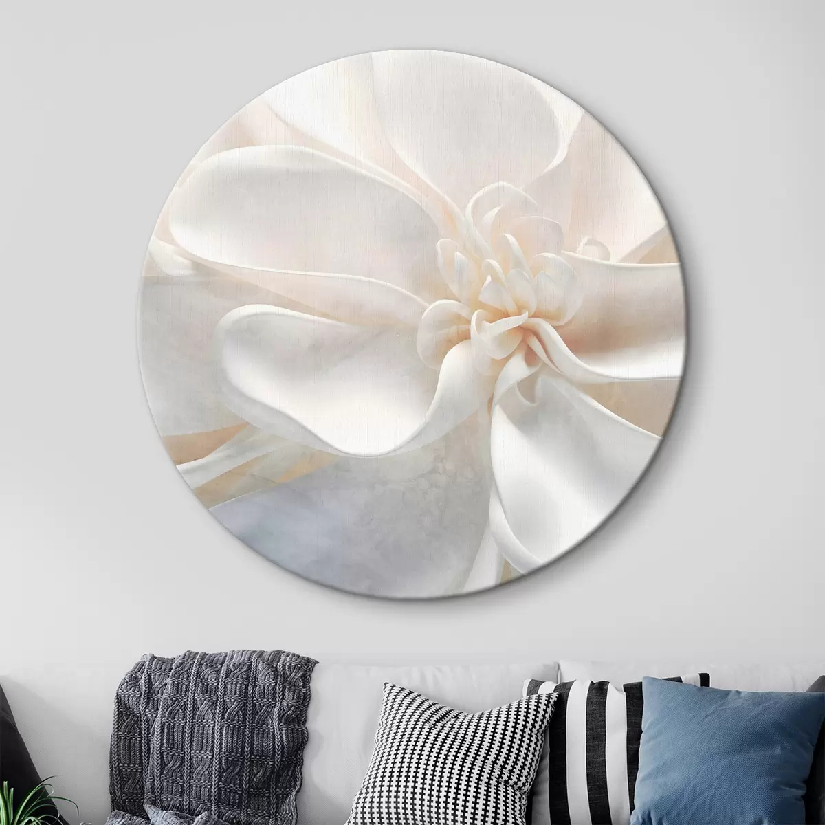 Apaļas gleznas Plaši aplūkojiet trokšņainu tekstūras baltu abstraktu ziedu ar smalkiem ziedlapiņām pasteļtoņos r43161