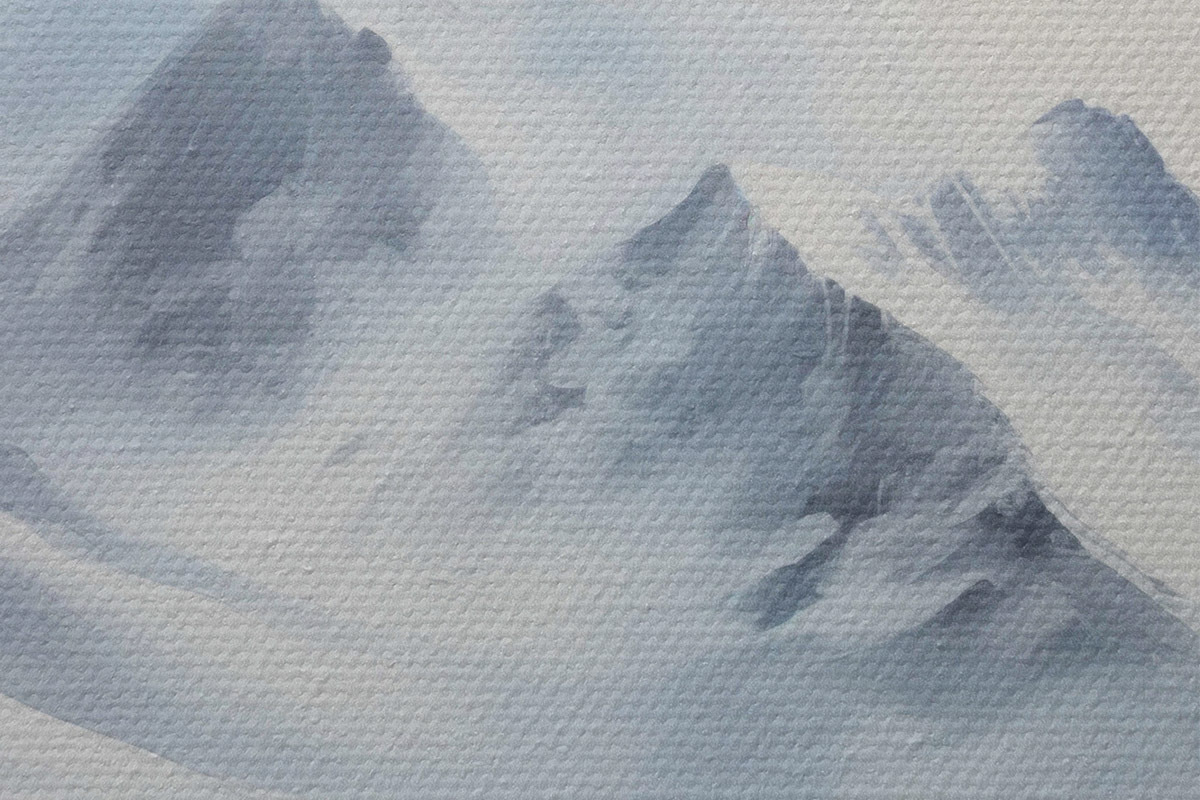Smalkais diegu pinums uz šī audekla atgādina profesionālu mākslinieku audeklu virsmu.