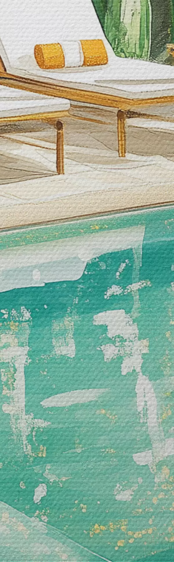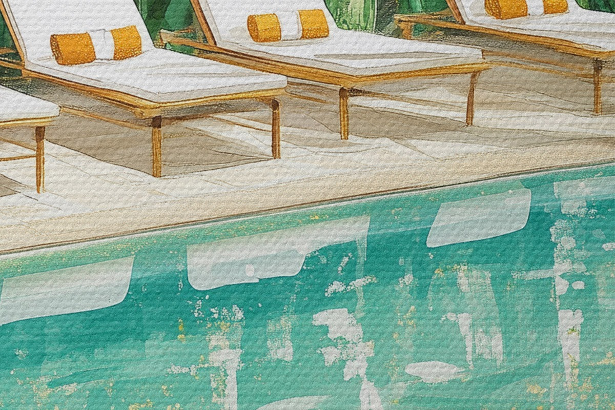 Attēls Tropu daba, dārzs, vasaras baseins, sērfošana, akvareļu stils Nr r43190