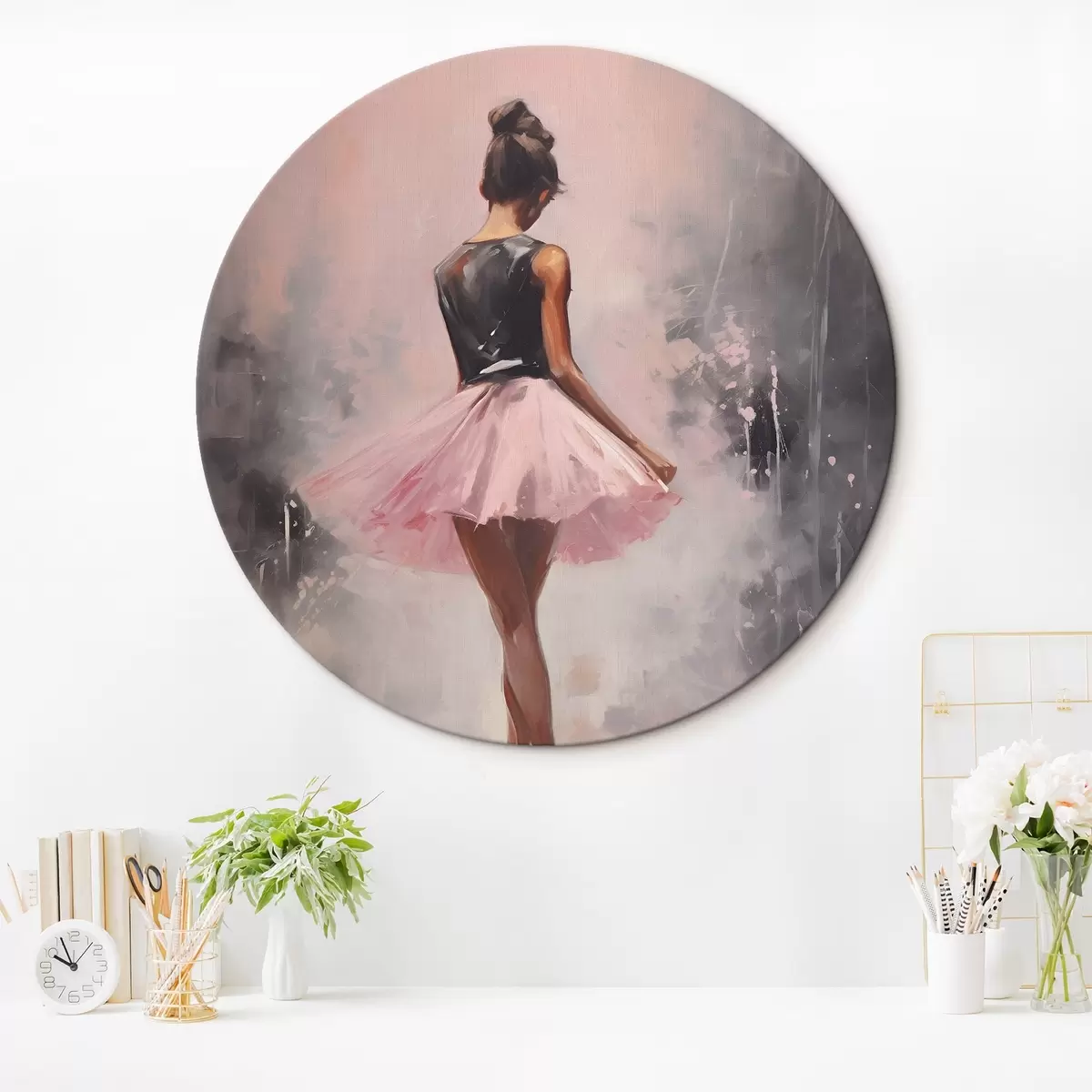 Apaļas gleznas Meitene rozā svārkos r43204