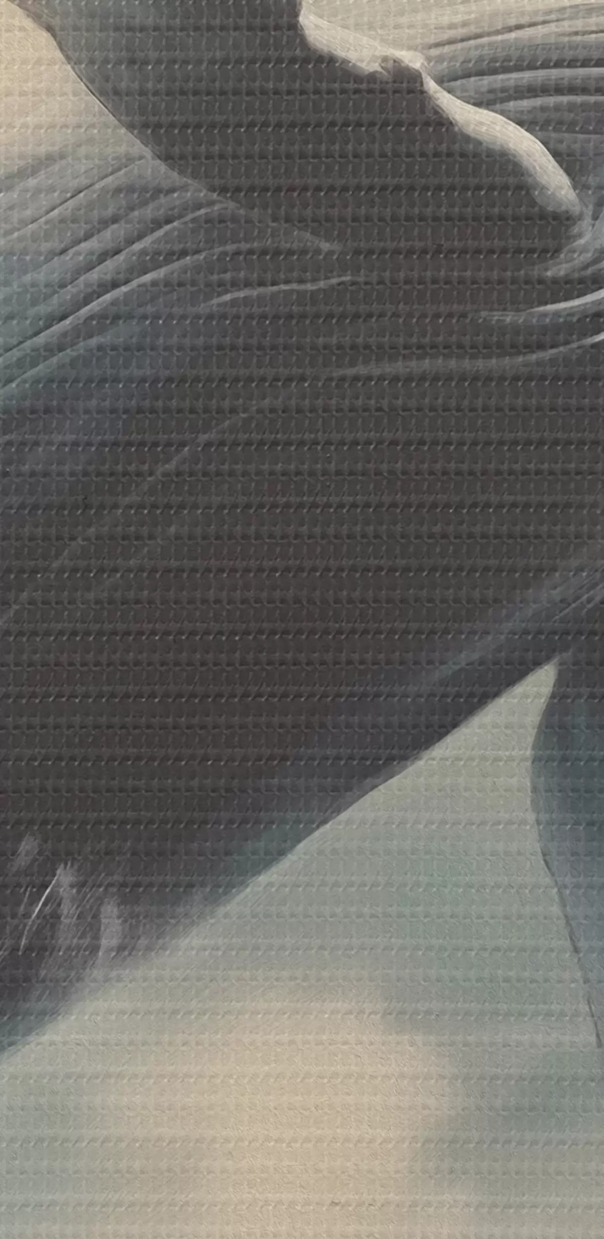 Smalkais diegu pinums uz šī audekla atgādina profesionālu mākslinieku audeklu virsmu.