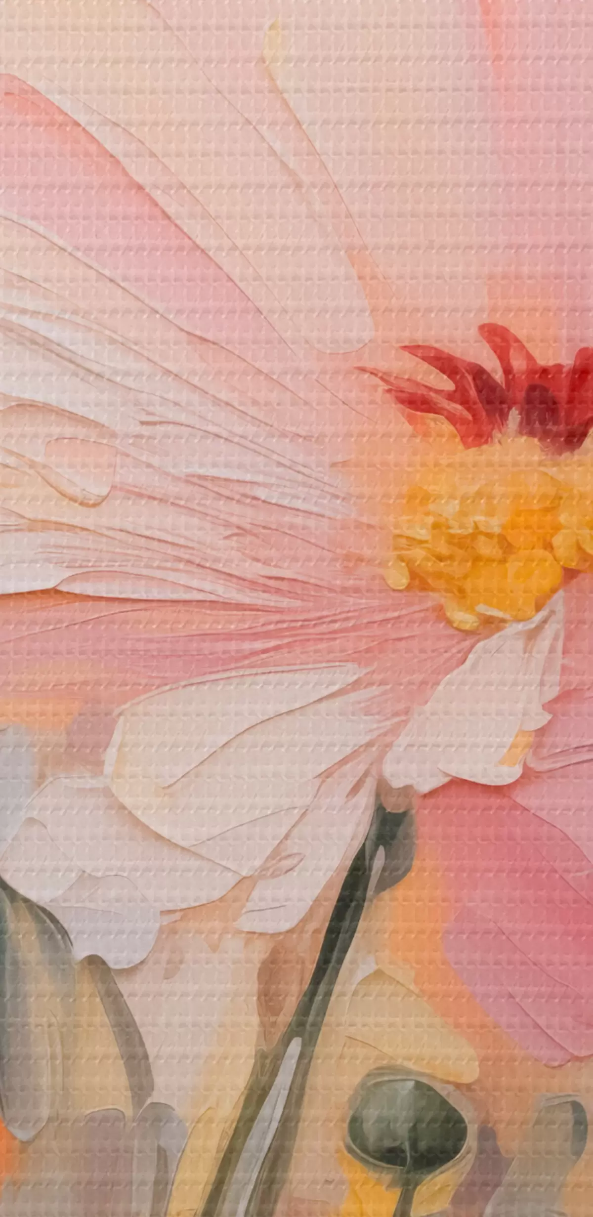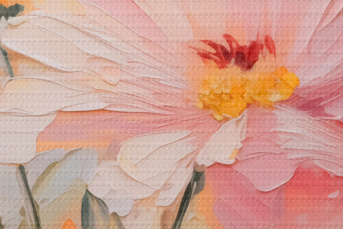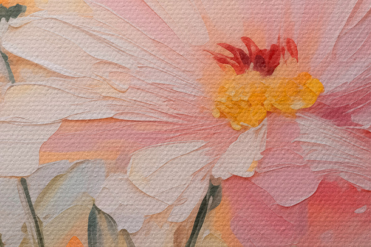 Smalkais diegu pinums uz šī audekla atgādina profesionālu mākslinieku audeklu virsmu.