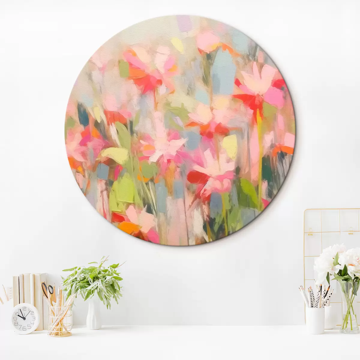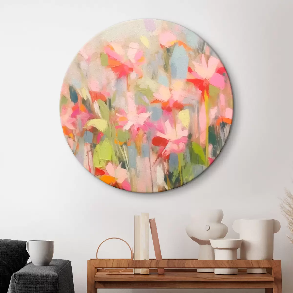 Apaļas gleznas Rozā ziedu abstrakcija r43243